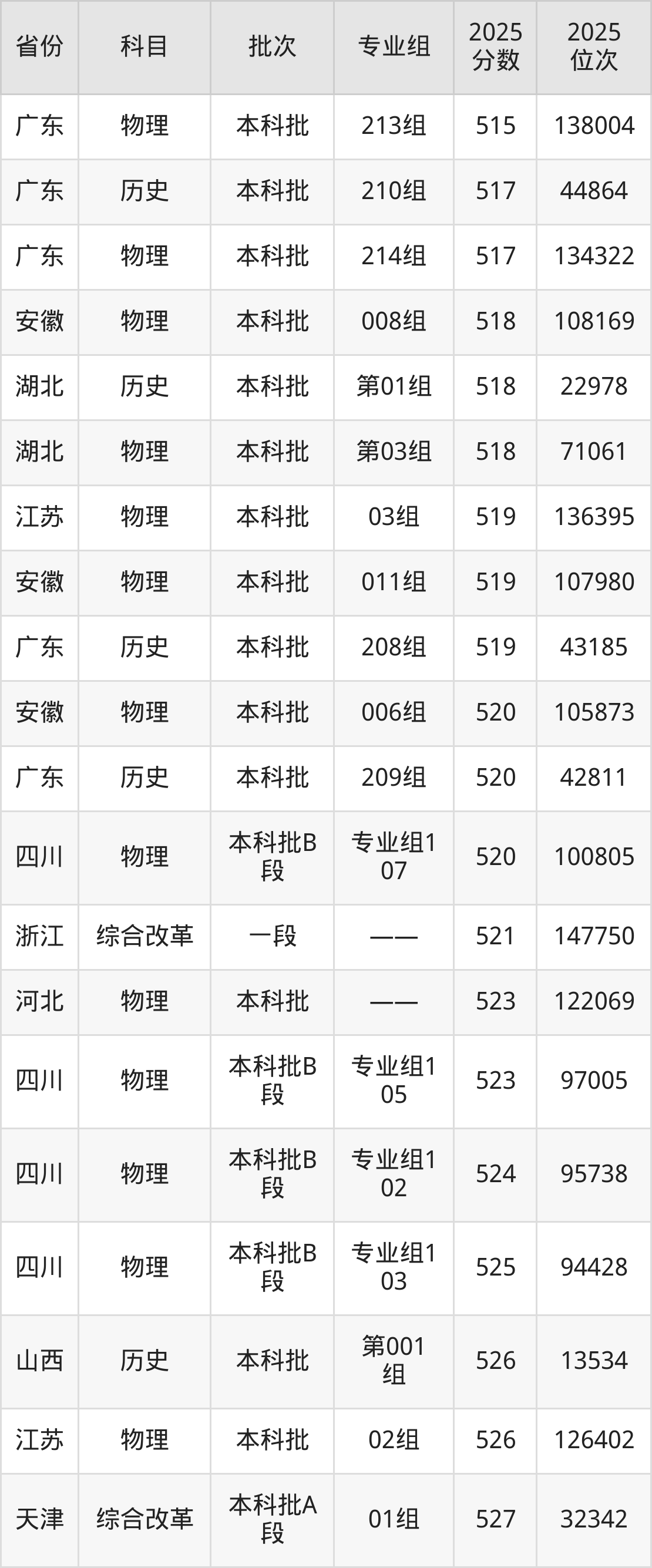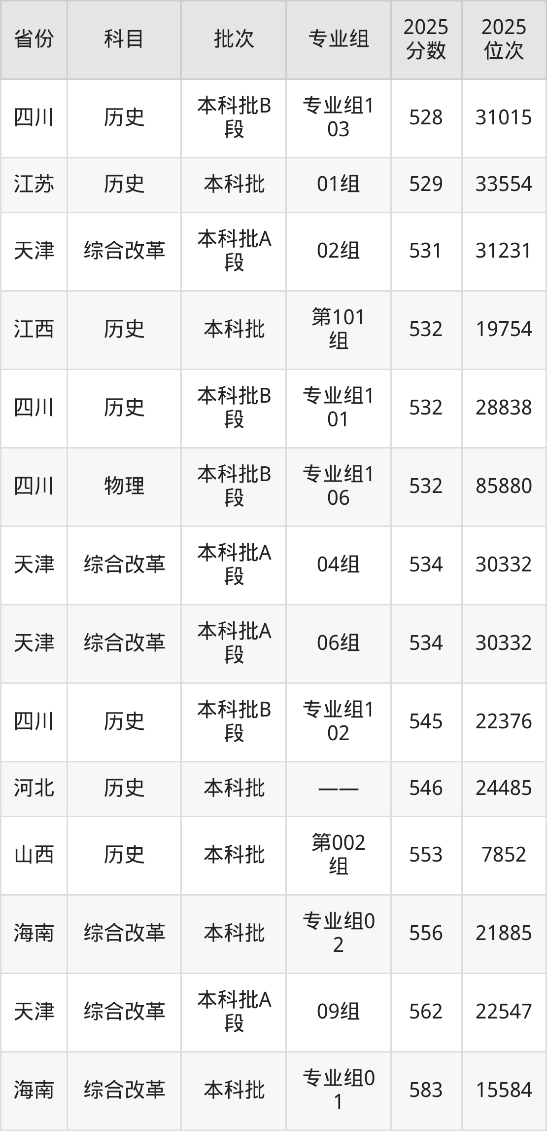 最高录取分数线是532分,对应位次是85880名,招生地区为四川。