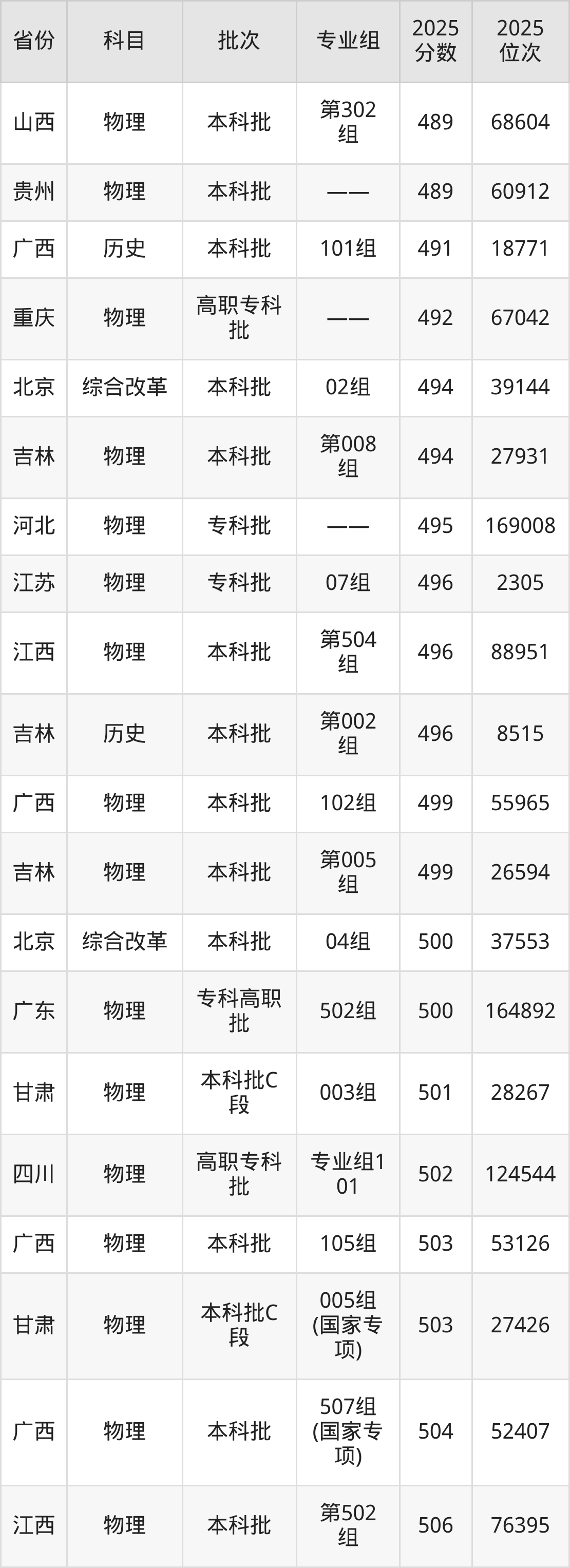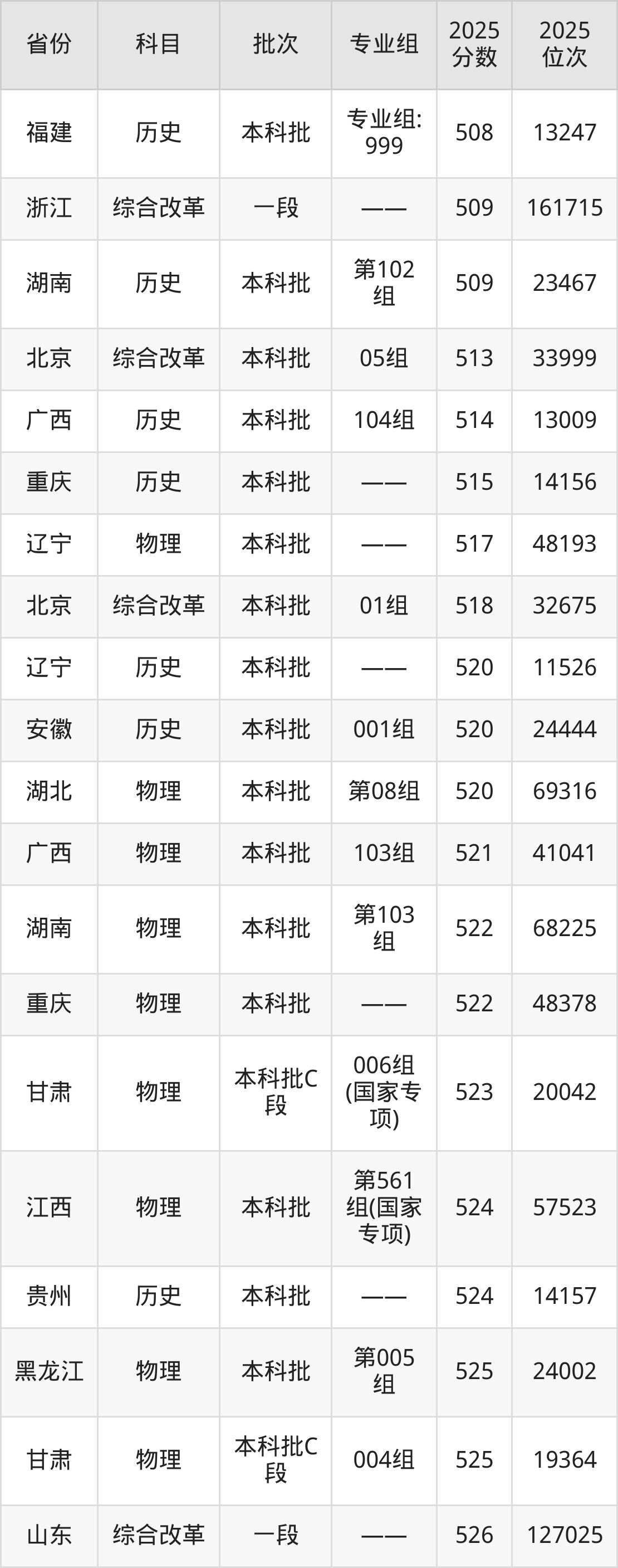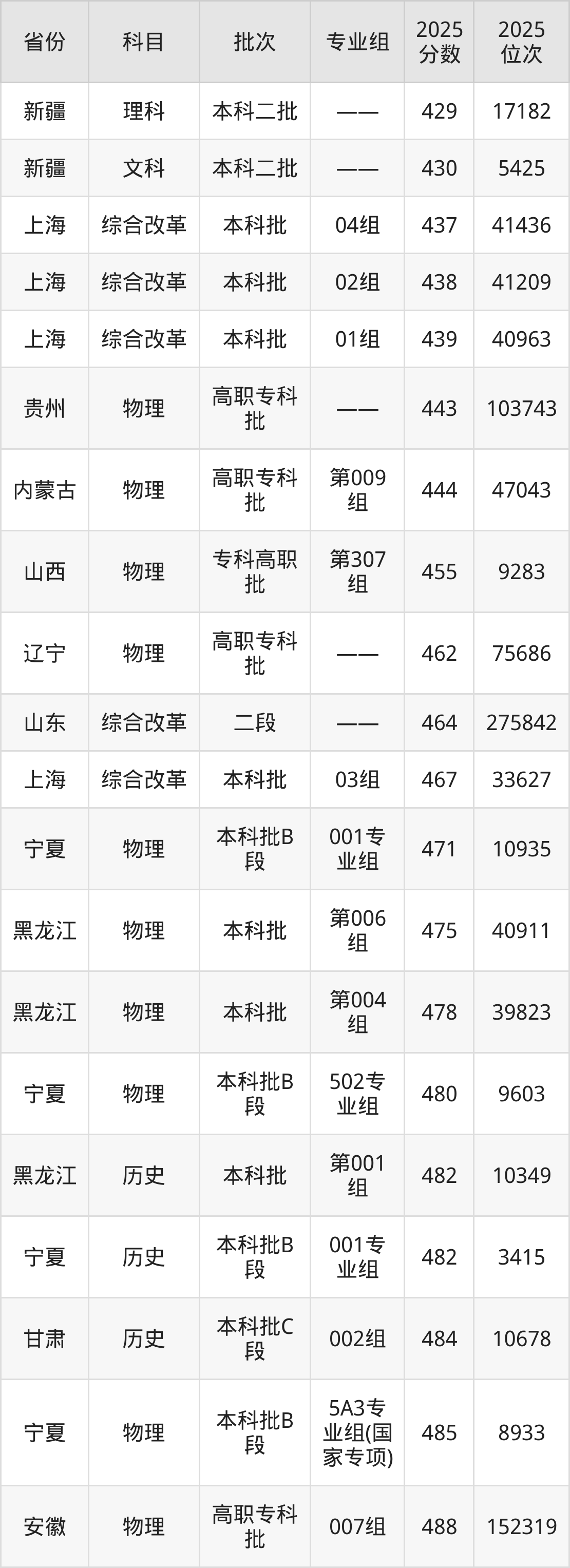 最低录取分数线是429分,对应位次是17182名,招生地区为新疆;
