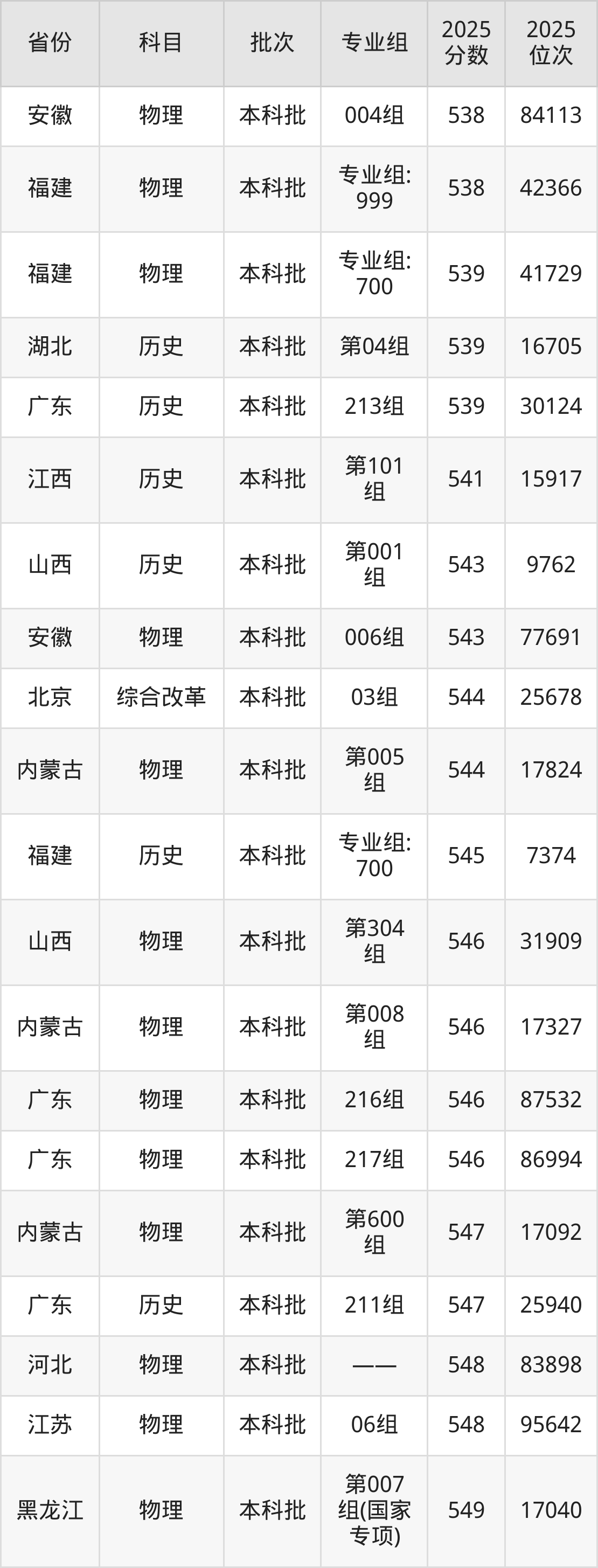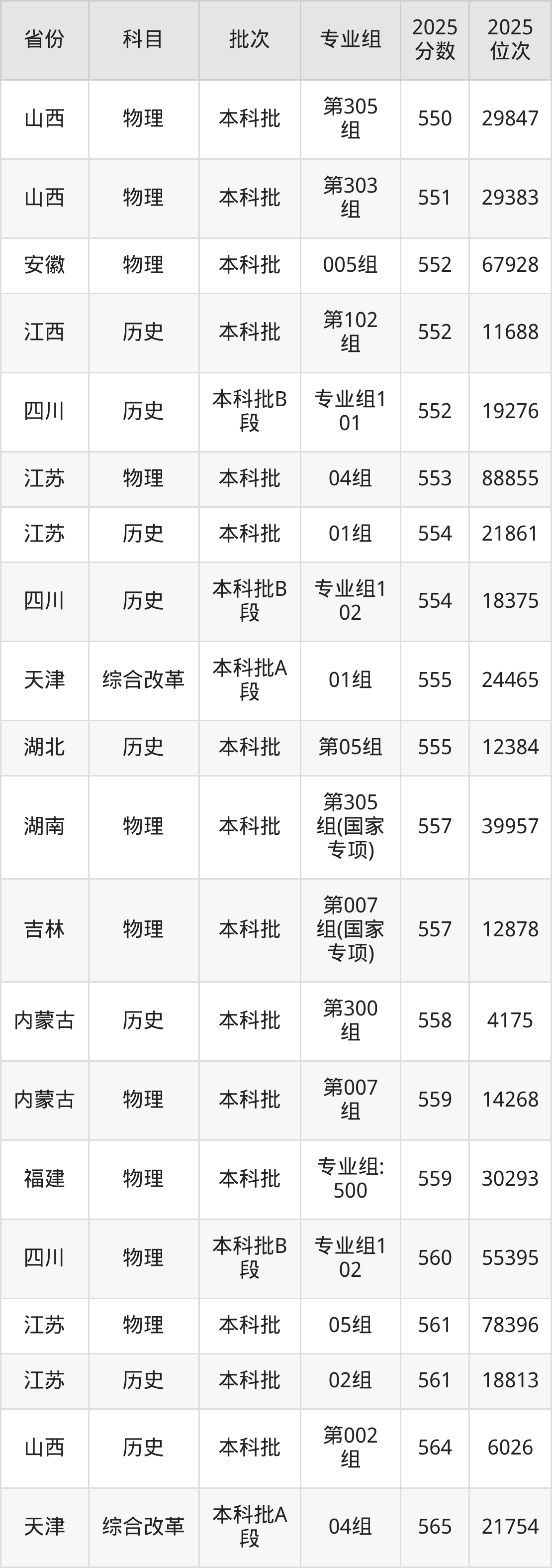 2025年中国民用航空飞行学院在各省物理类和理科的录取分数线位于429分-561分之间。