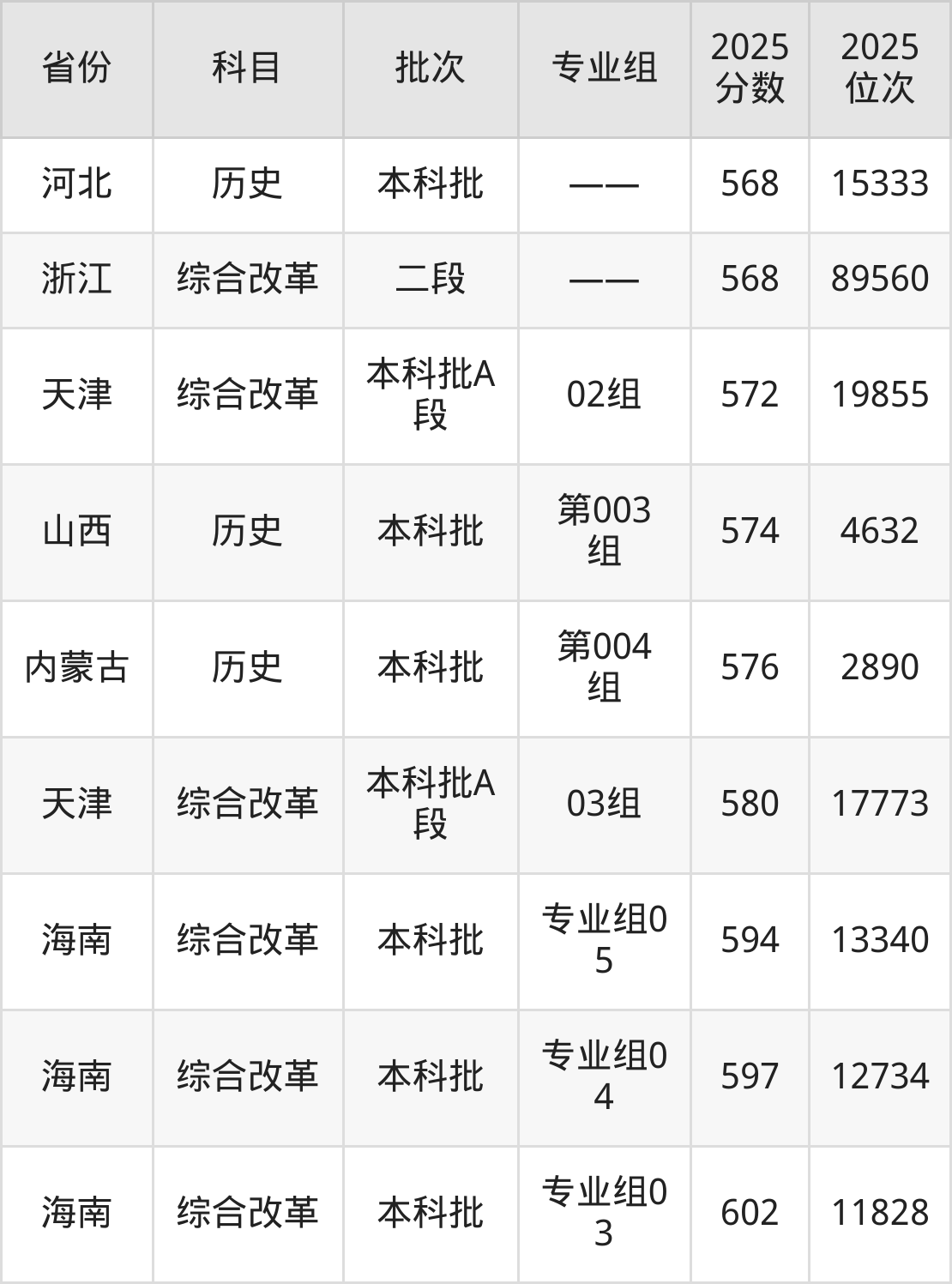 最高录取分数线是602分,对应位次是11828名,招生地区为海南。