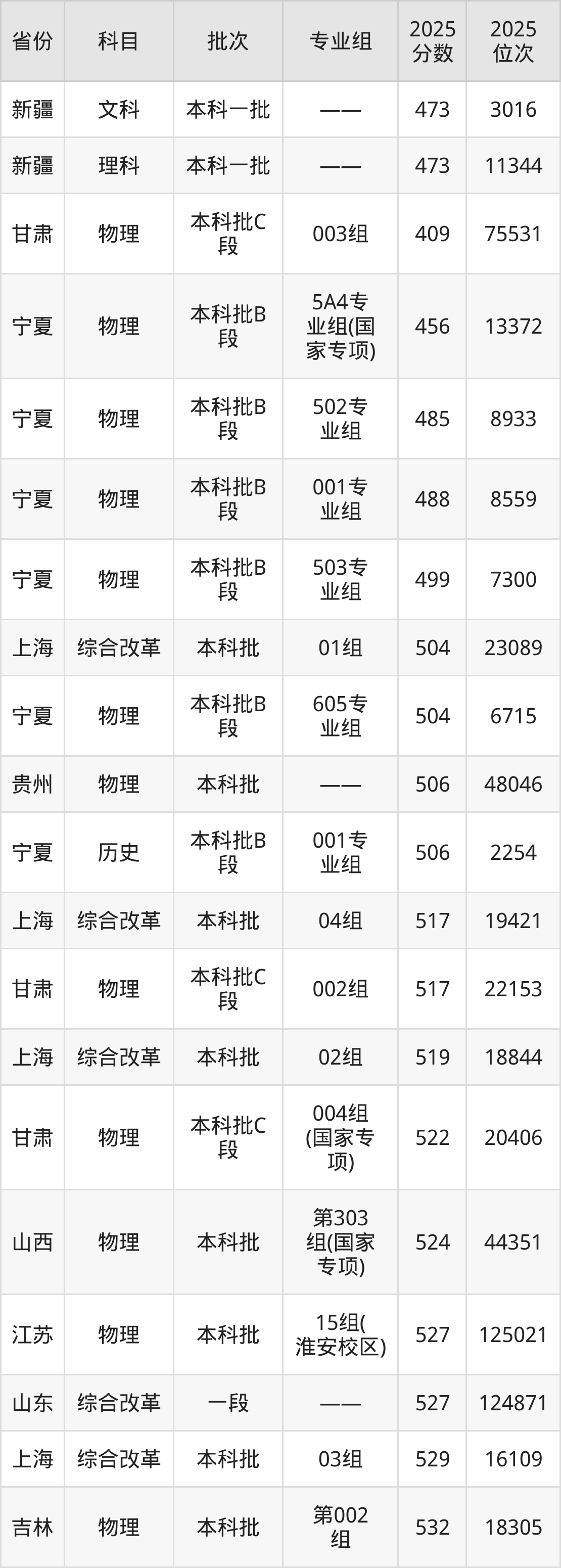 最低录取分数线是473分,对应位次是3016名,招生地区为新疆;