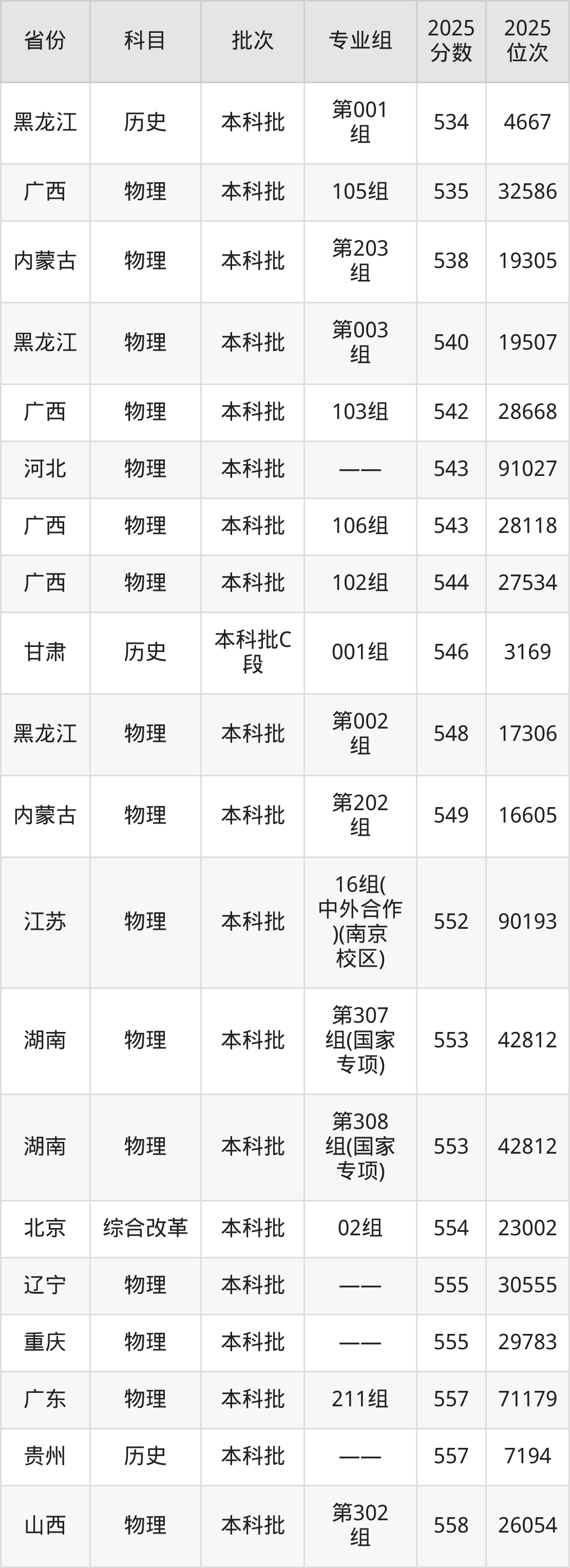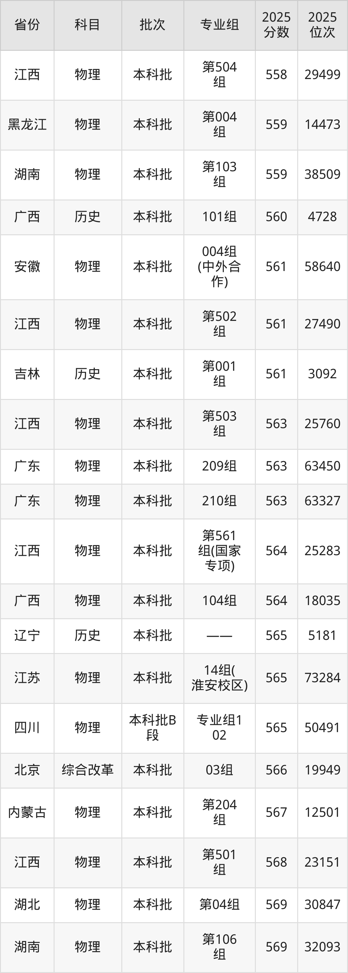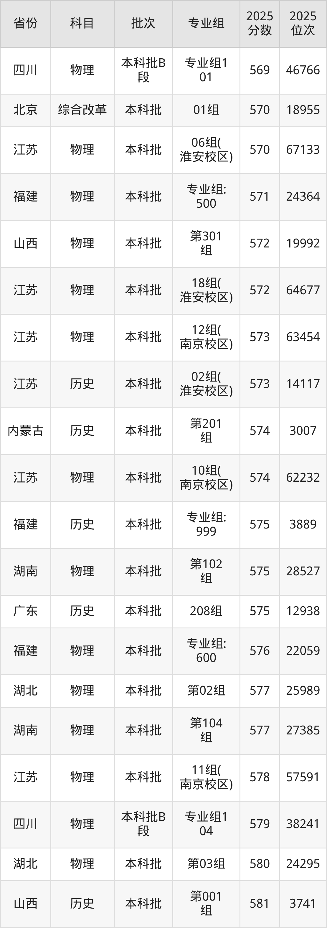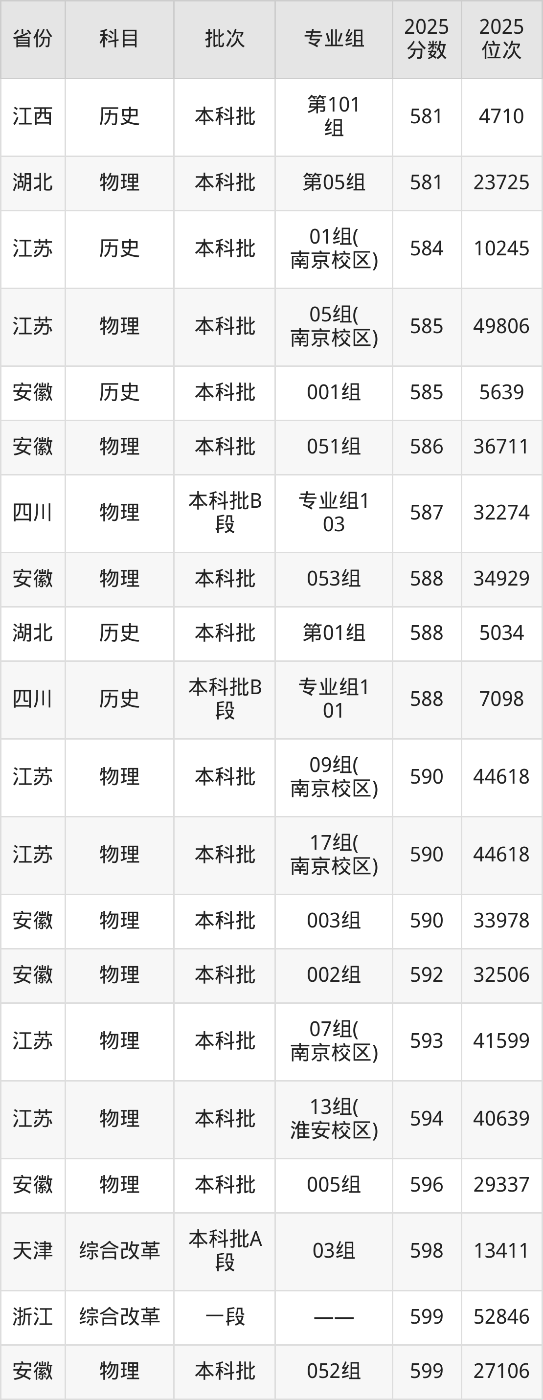 2025年南京林业大学在各省普通批录取分数线一览表: