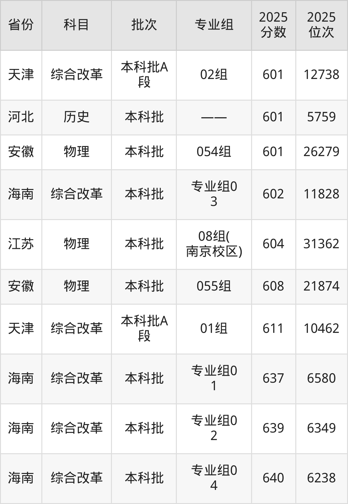 最高录取分数线是640分,对应位次是6238名,招生地区为海南。
