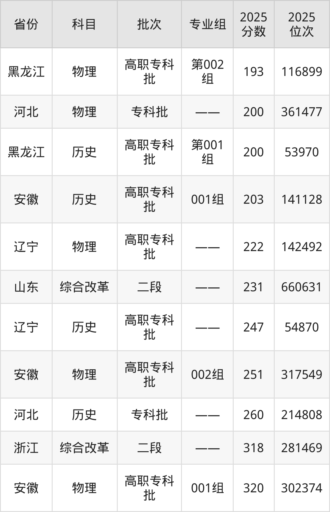 最低录取分数线是193分,对应位次是116899名,招生地区为黑龙江;