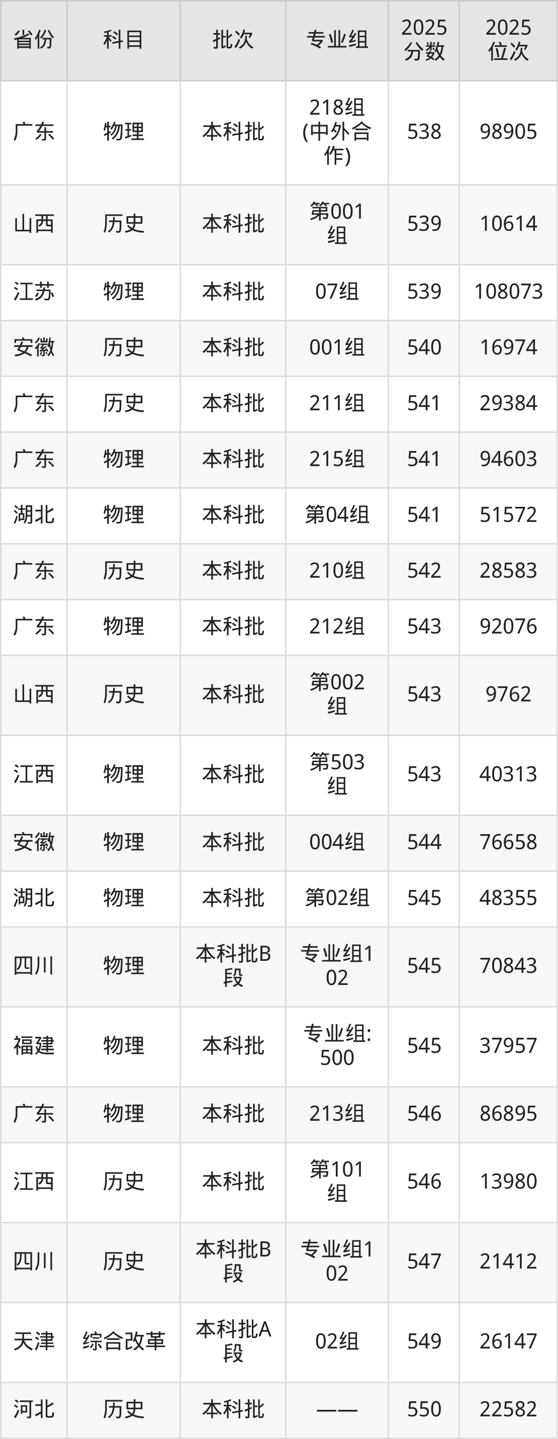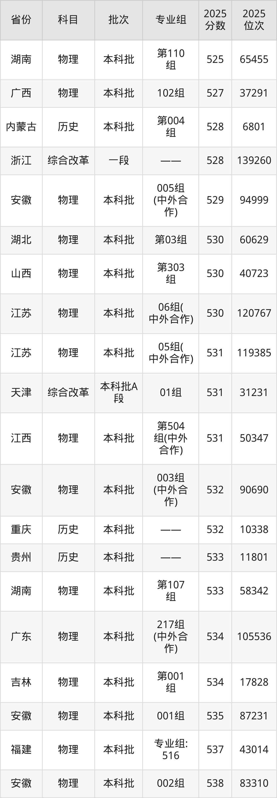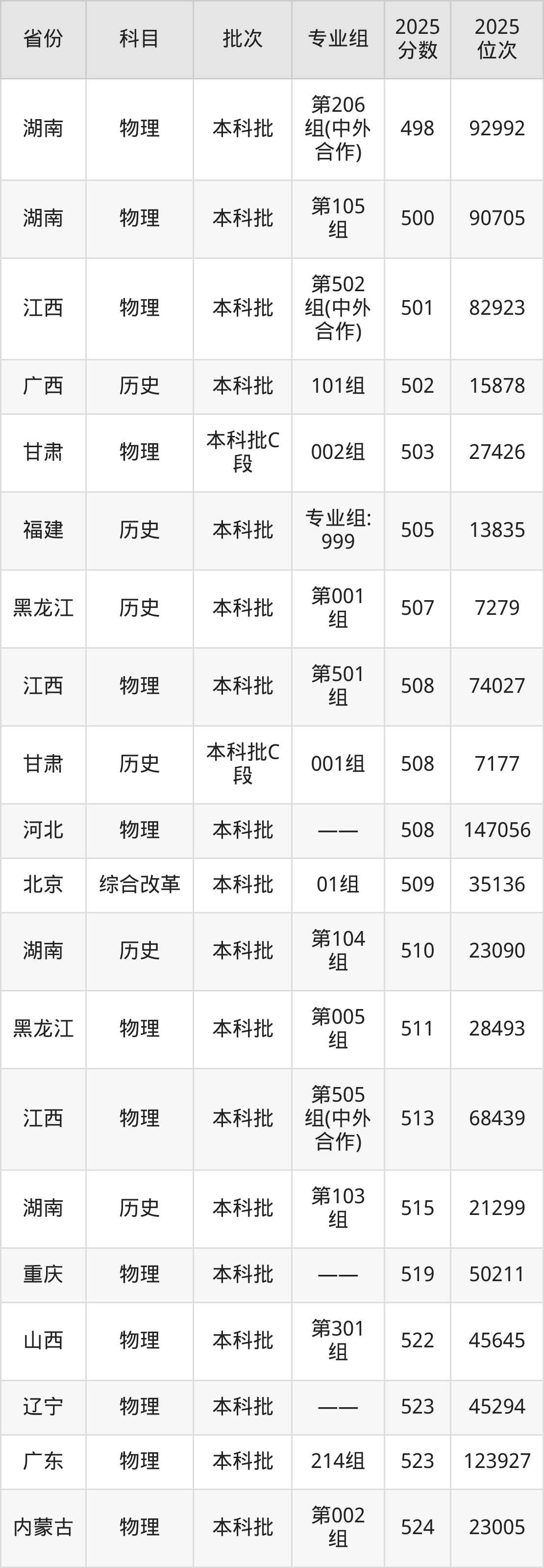 2025年河南科技大学在各省普通批录取分数线一览表: