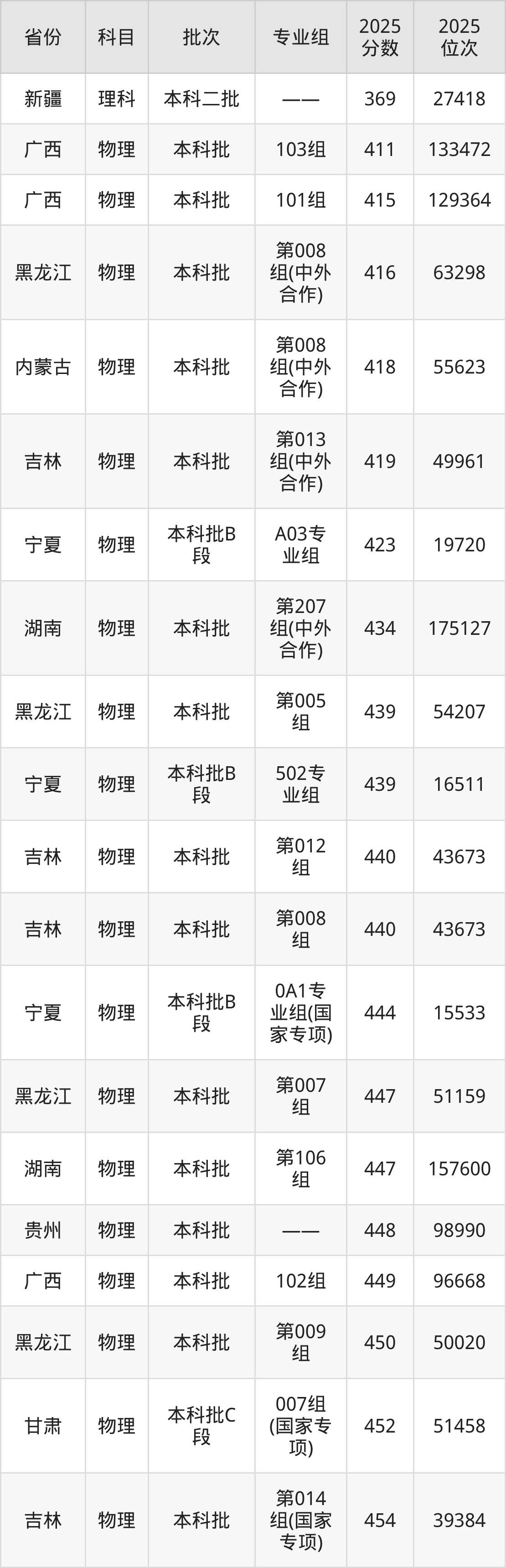 最低录取分数线是369分,对应位次是27418名,招生地区为新疆;