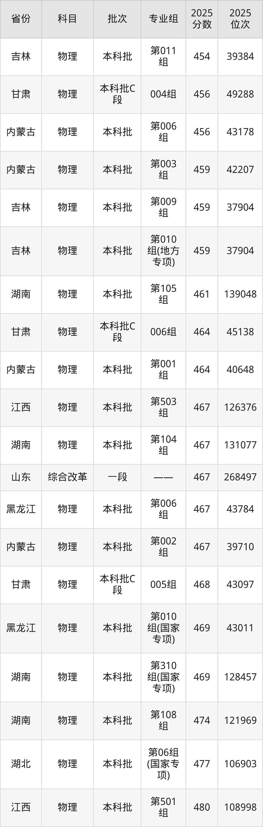 最低录取分数线是467分,对应位次是268497名,招生地区为山东;