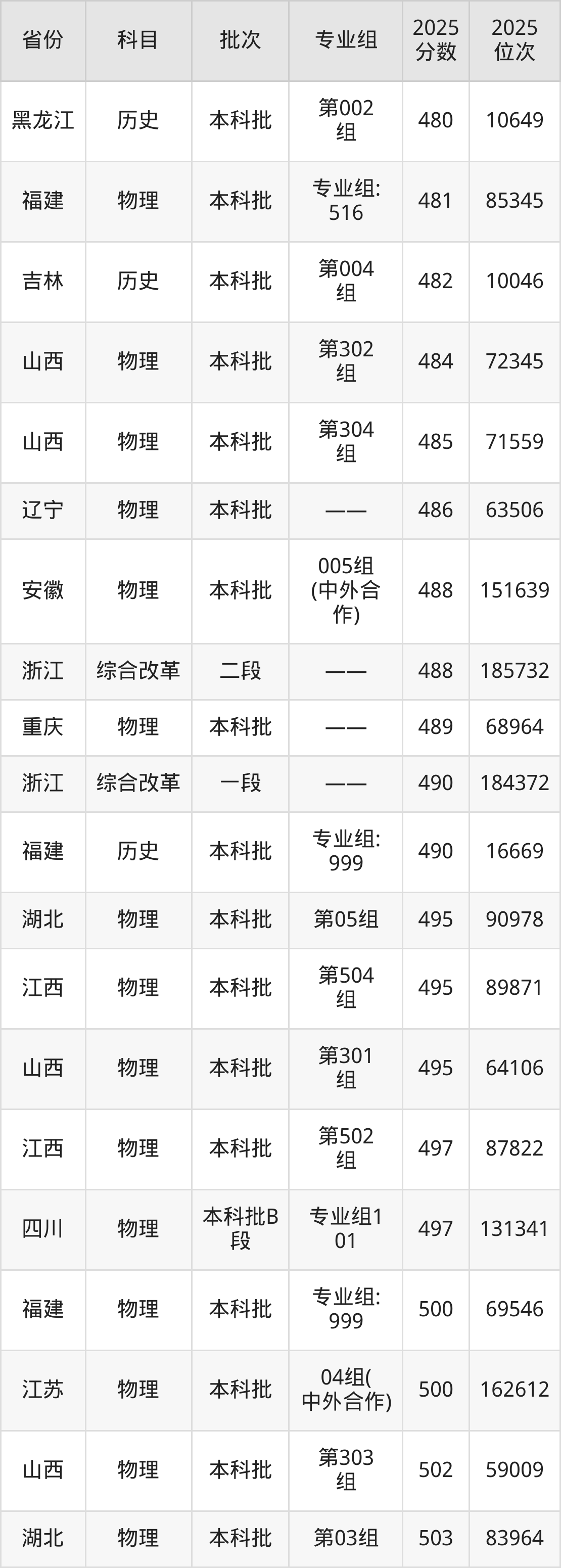 最低录取分数线是480分,对应位次是10649名,招生地区为黑龙江;