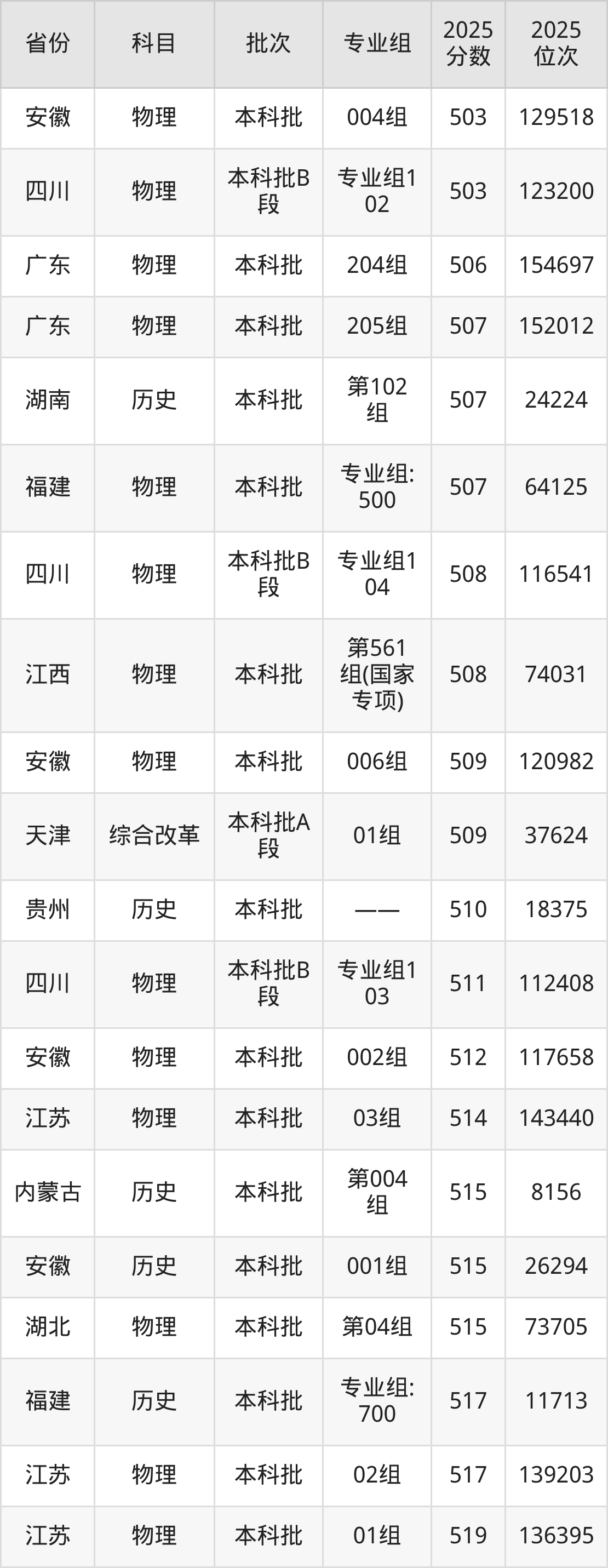 最高录取分数线是521分,对应位次是104767名,招生地区为安徽。