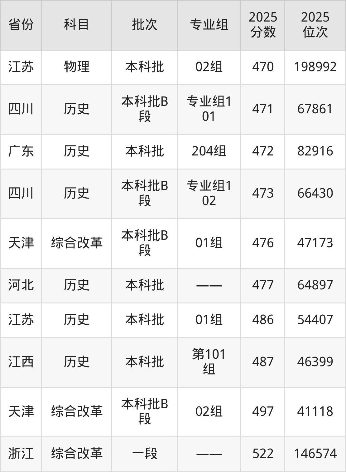 最高录取分数线是470分,对应位次是198992名,招生地区为江苏。