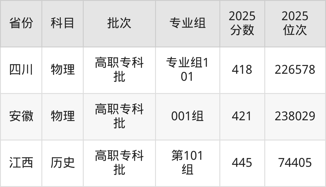 最高录取分数线是445分,对应位次是74405名,招生地区为江西。