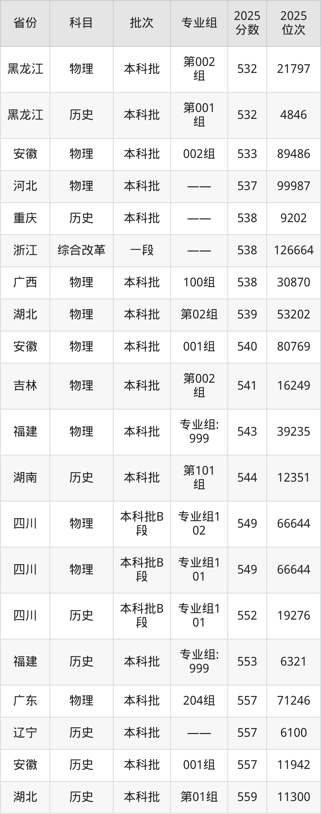 最高录取分数线是538分,对应位次是126664名,招生地区为浙江。