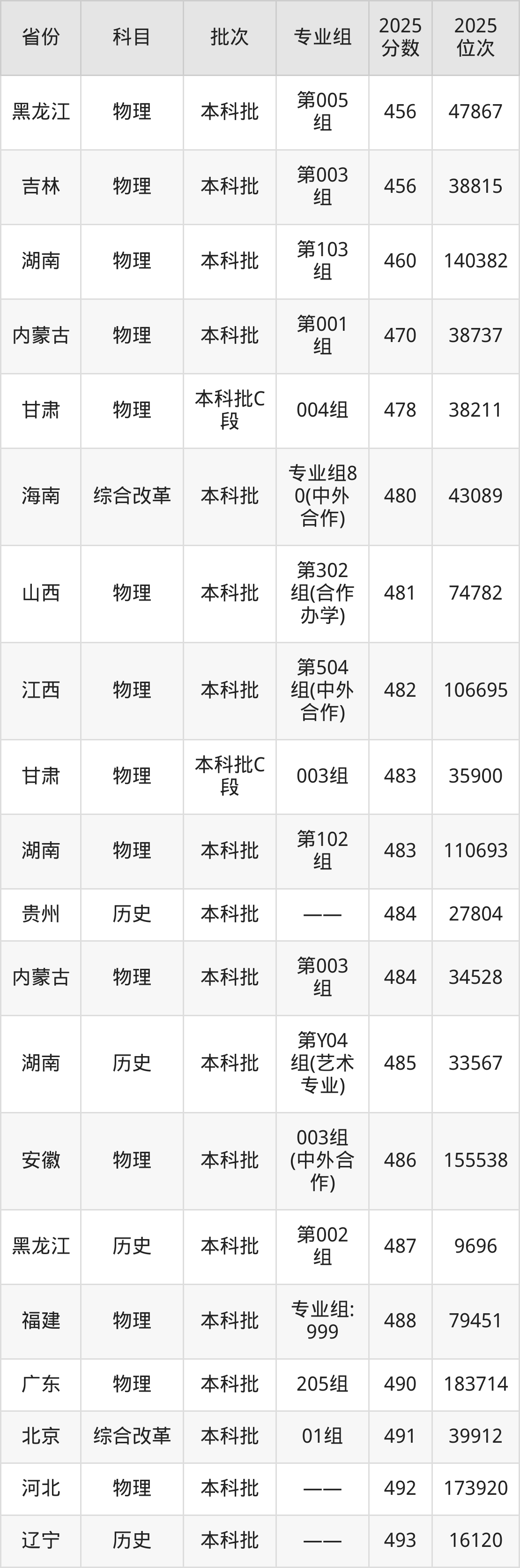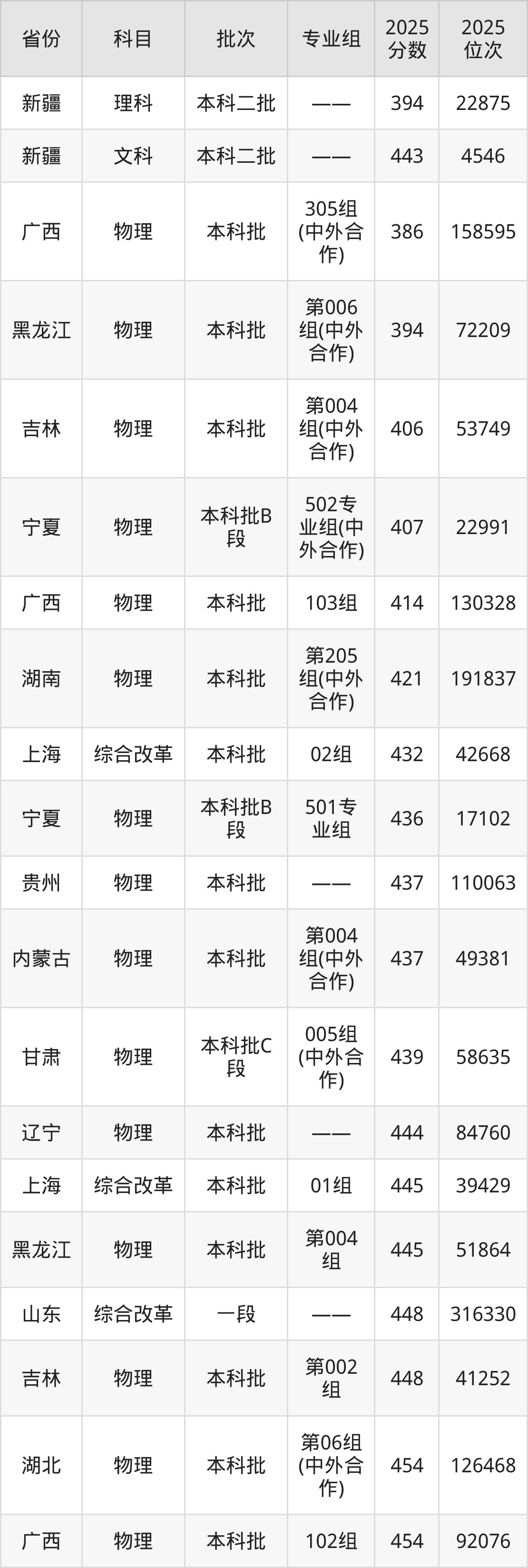 最低录取分数线是443分,对应位次是4546名,招生地区为新疆;