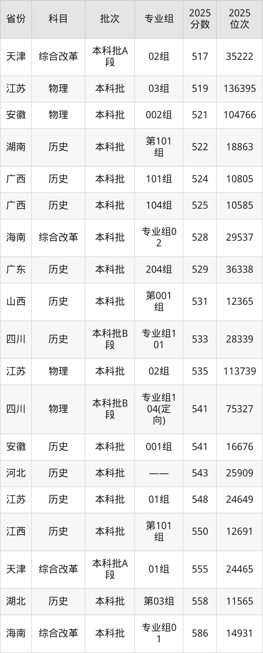 最高录取分数线是586分,对应位次是14931名,招生地区为海南。