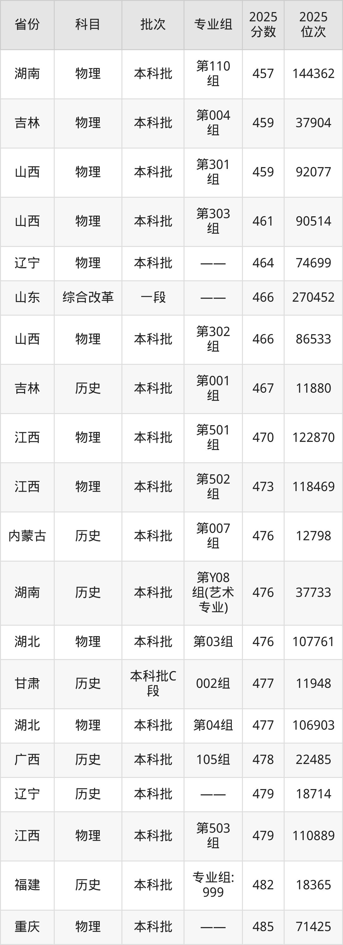 2025年商丘师范学院在各省普通批录取分数线一览表: