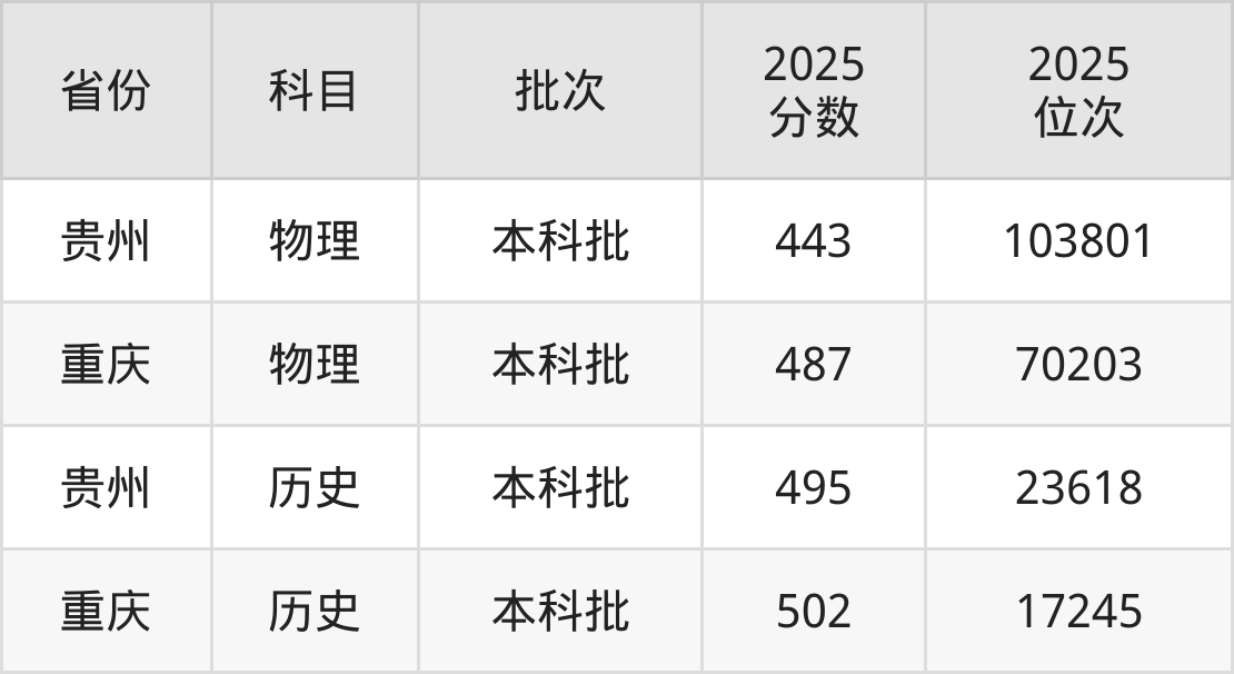 最低录取分数线是495分,对应位次是23618名,招生地区为贵州;