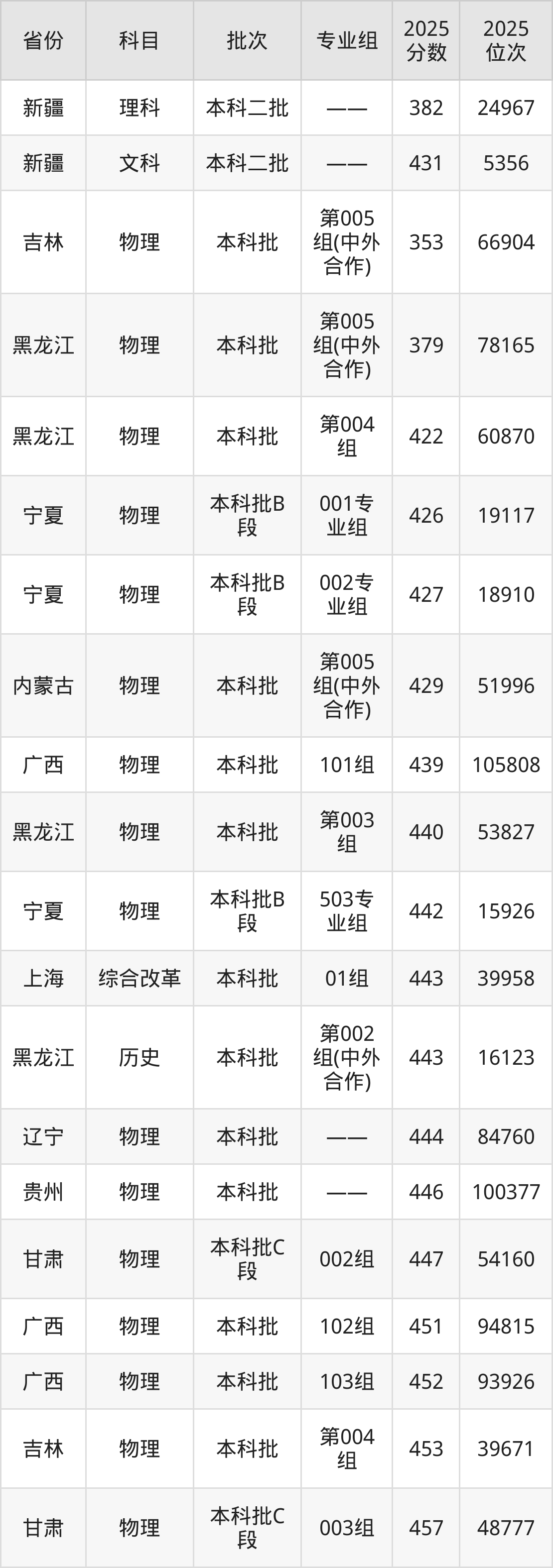 最低录取分数线是443分,对应位次是39958名,招生地区为上海;