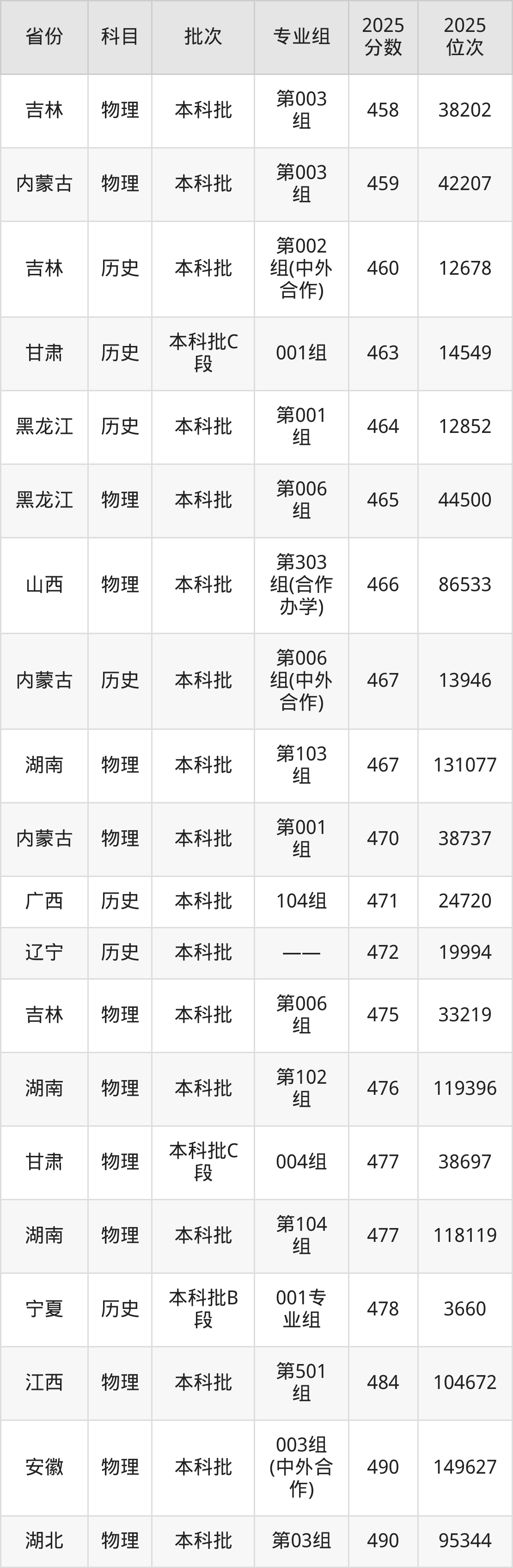 最低录取分数线是353分,对应位次是66904名,招生地区为吉林;