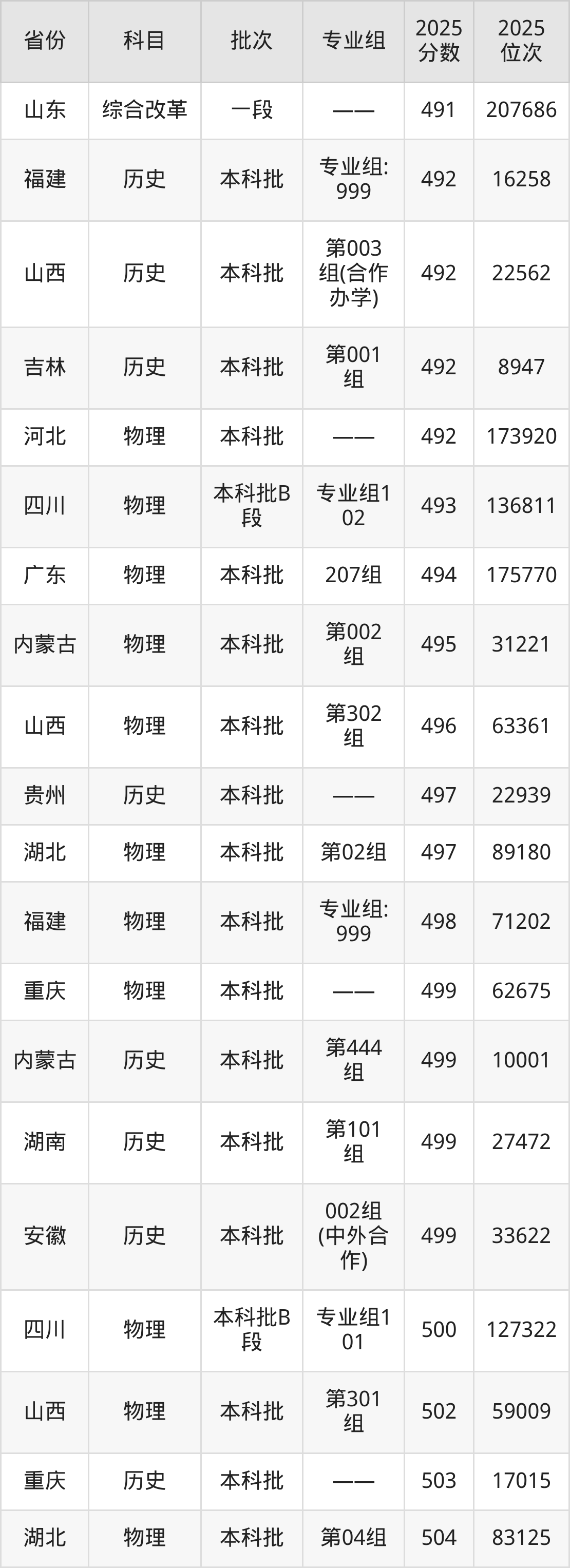 2025年山东工商学院在各省普通批录取分数线一览表: