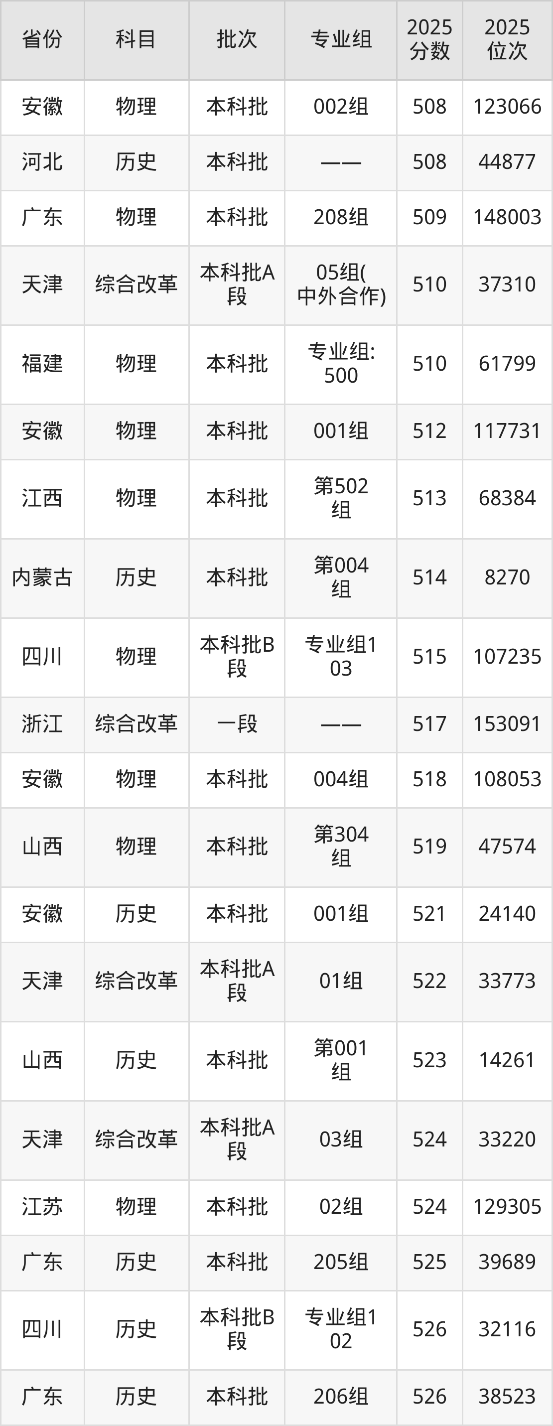 最高录取分数线是531分,对应位次是119385名,招生地区为江苏。
