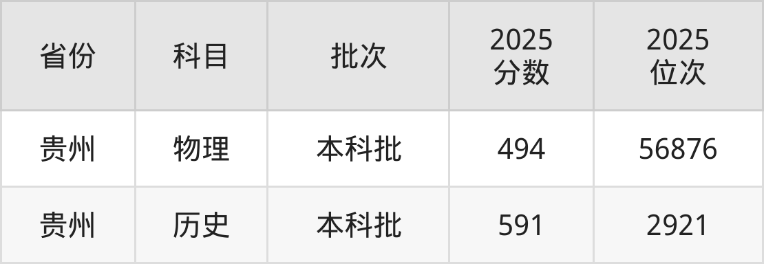 最低录取分数线是591分,对应位次是2921名,招生地区为贵州。