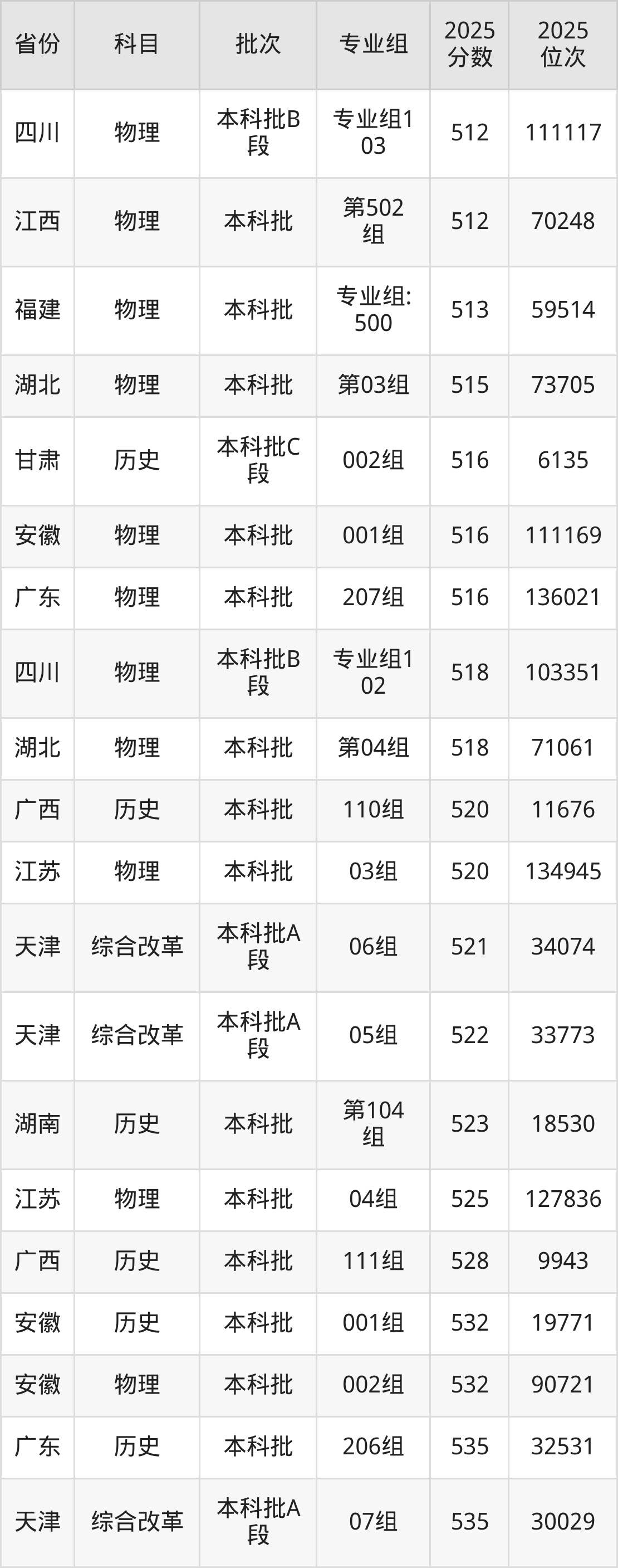 最低录取分数线是429分,对应位次是17182名,招生地区为新疆;