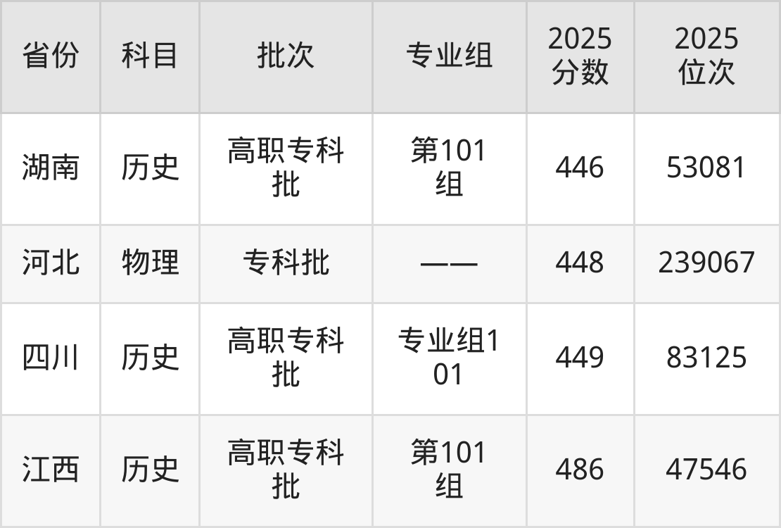 2025年漳州职业技术学院在普通批次招生,录取分数线是261分-486分。