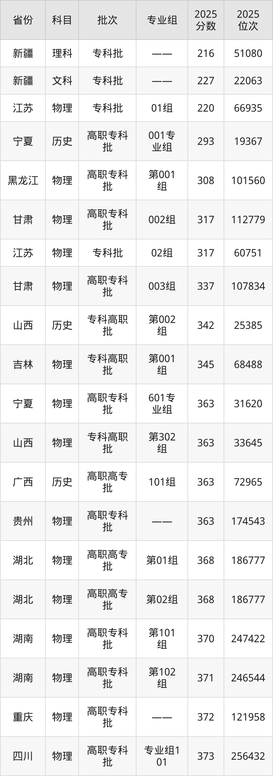 最低录取分数线是216分,对应位次是51080名,招生地区为新疆;