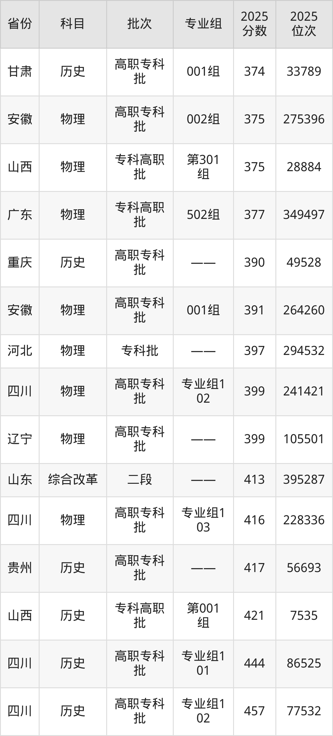 2025年泸州职业技术学院在各省历史类和文科的录取分数线位于227分-457分之间。
