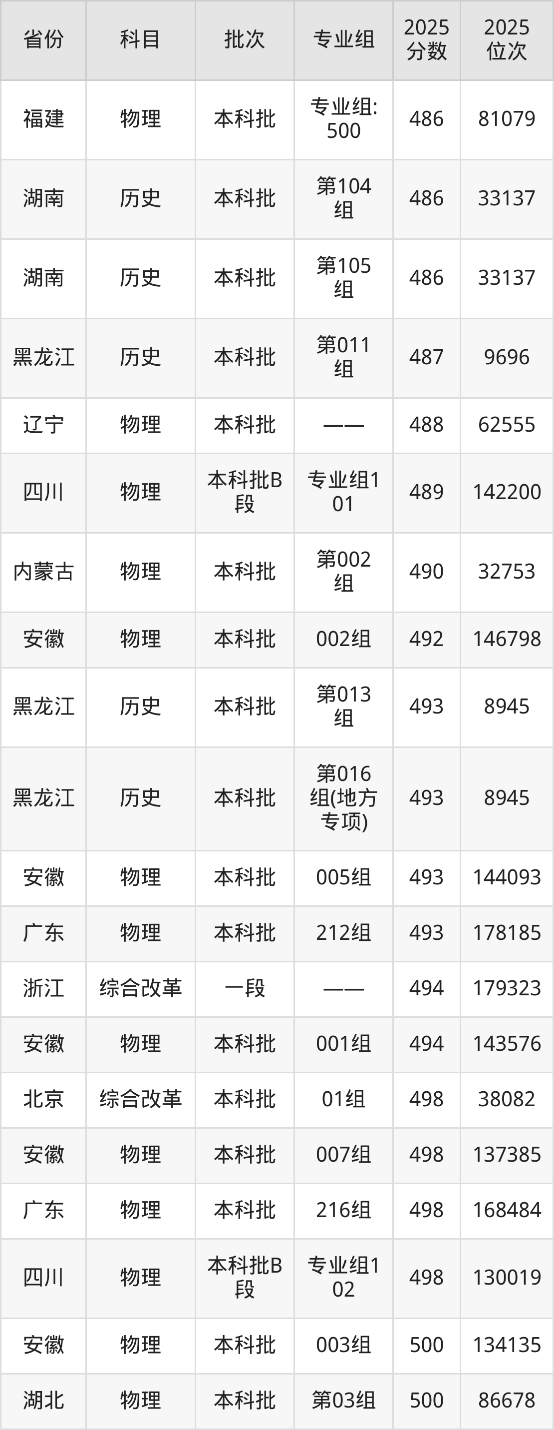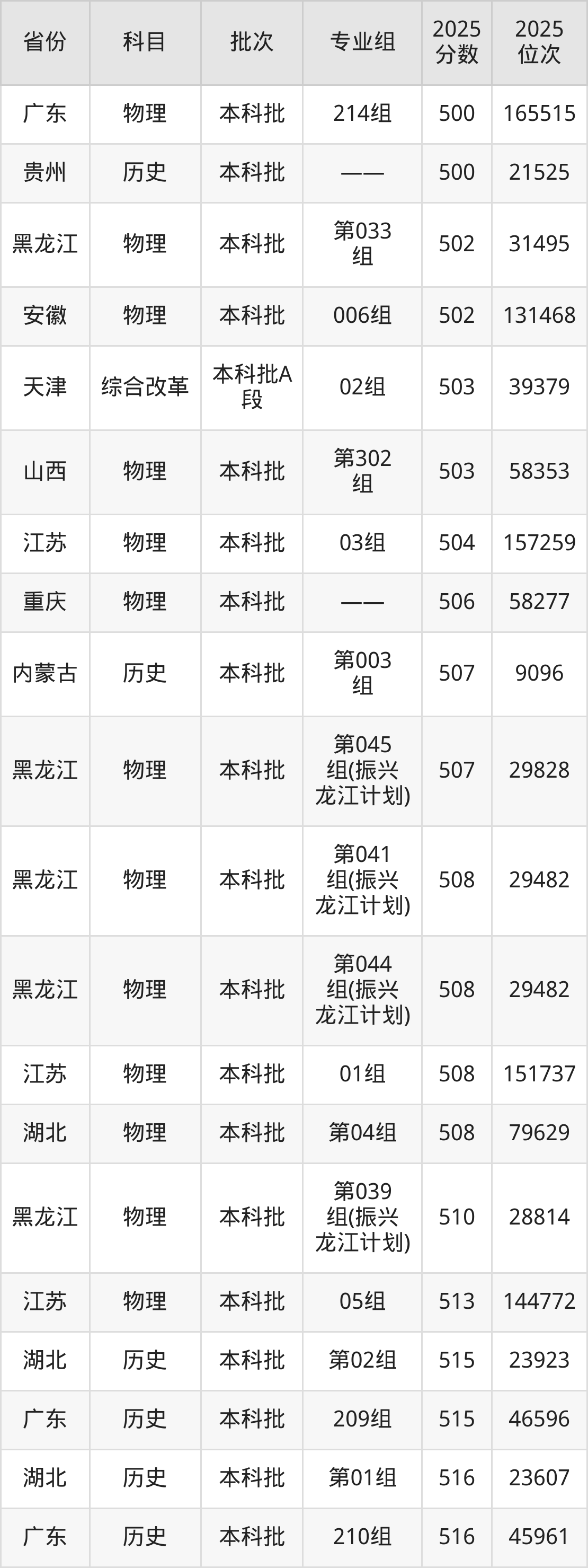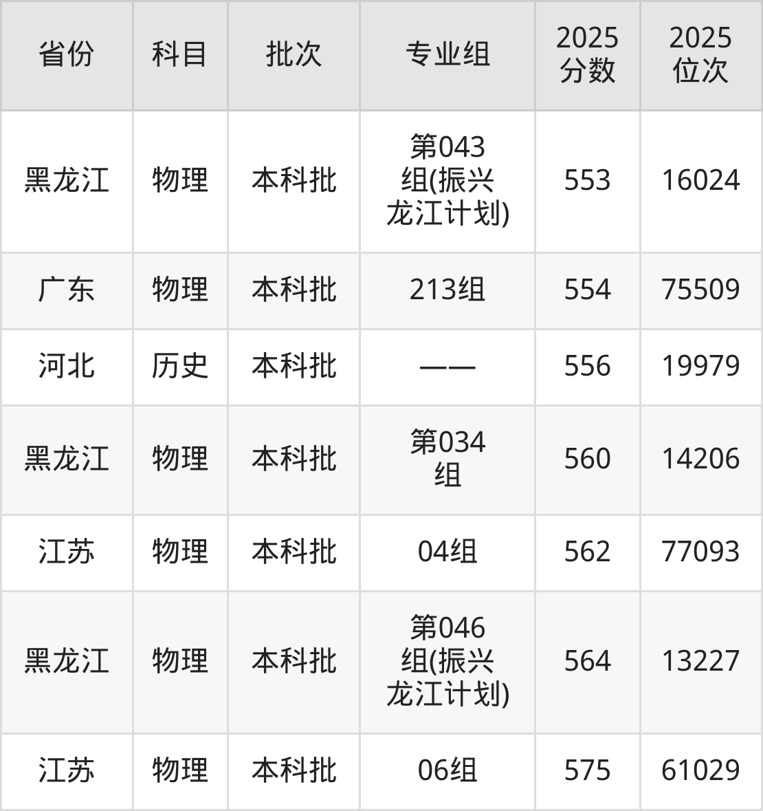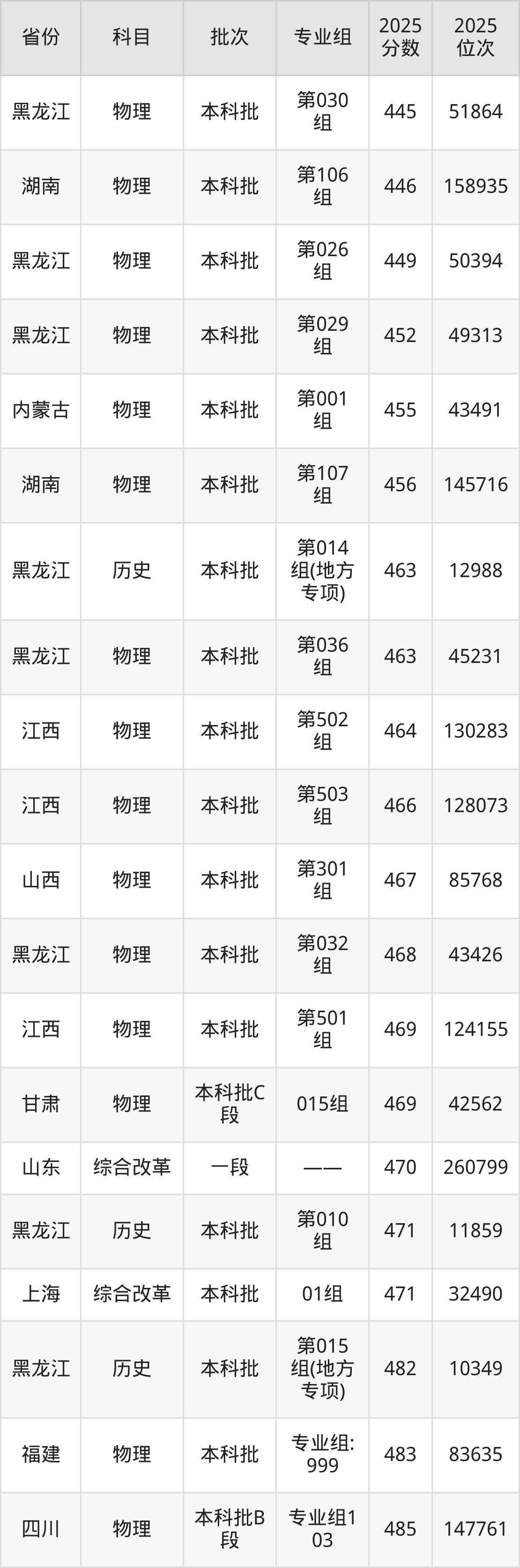 2025年佳木斯大学在各省普通批录取分数线一览表: