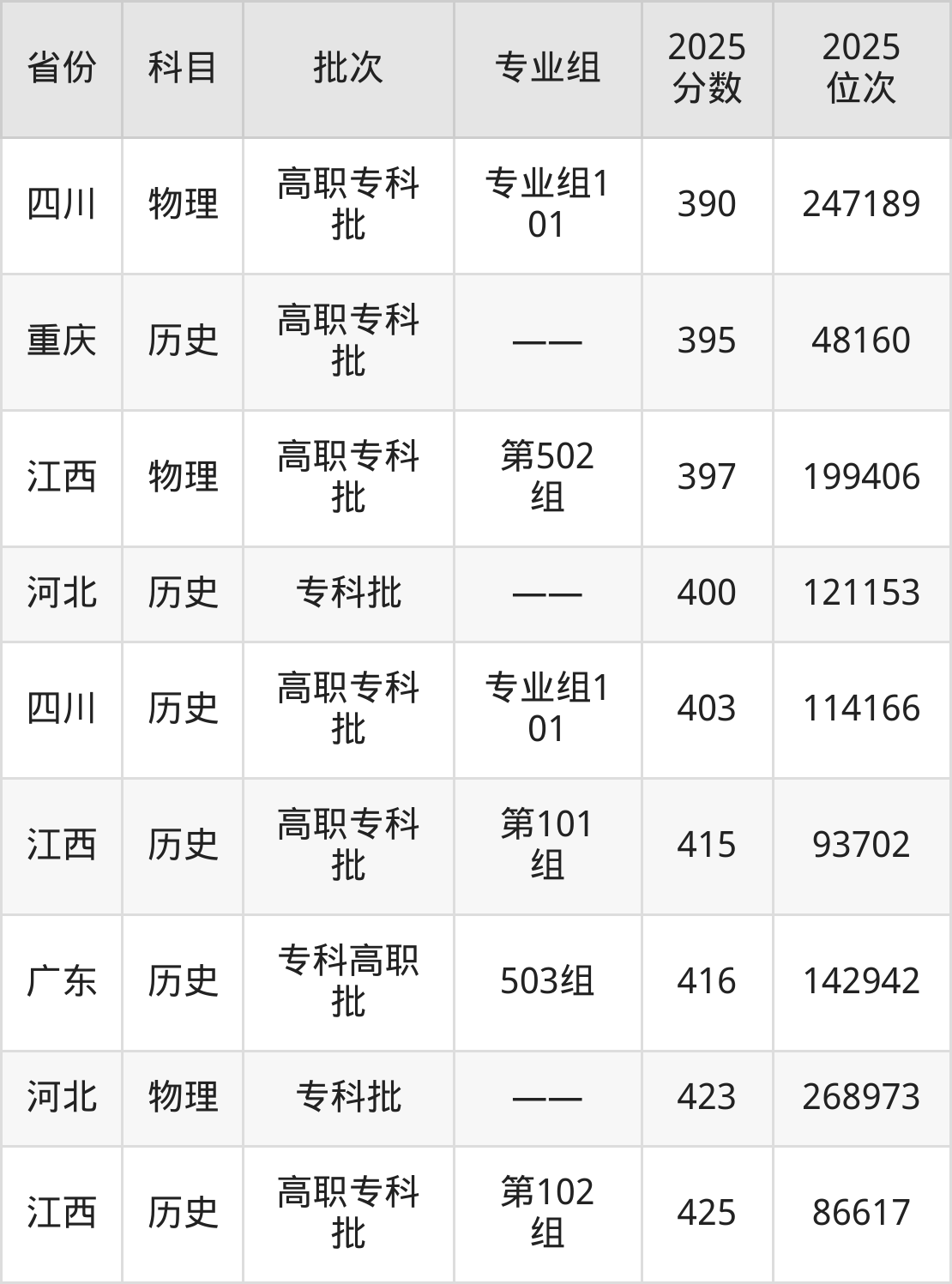 最高录取分数线是425分,对应位次是86617名,招生地区为江西。