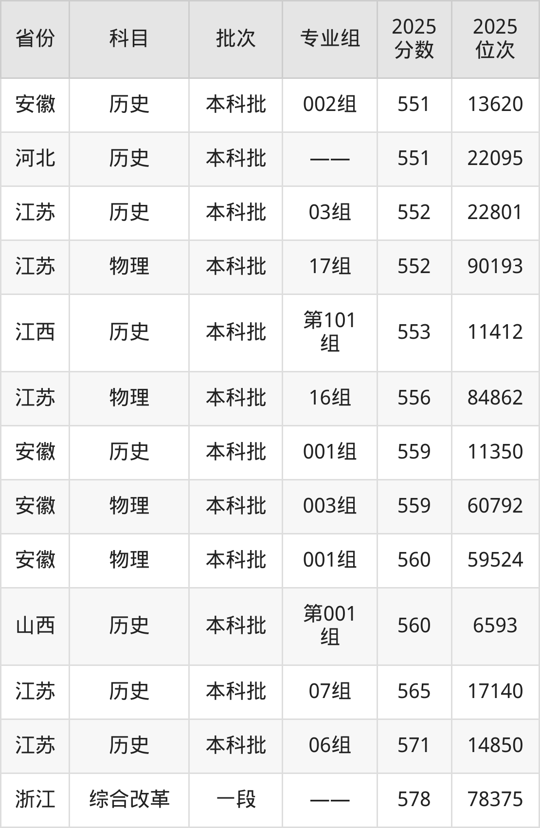 最高录取分数线是571分,对应位次是14850名,招生地区为江苏。