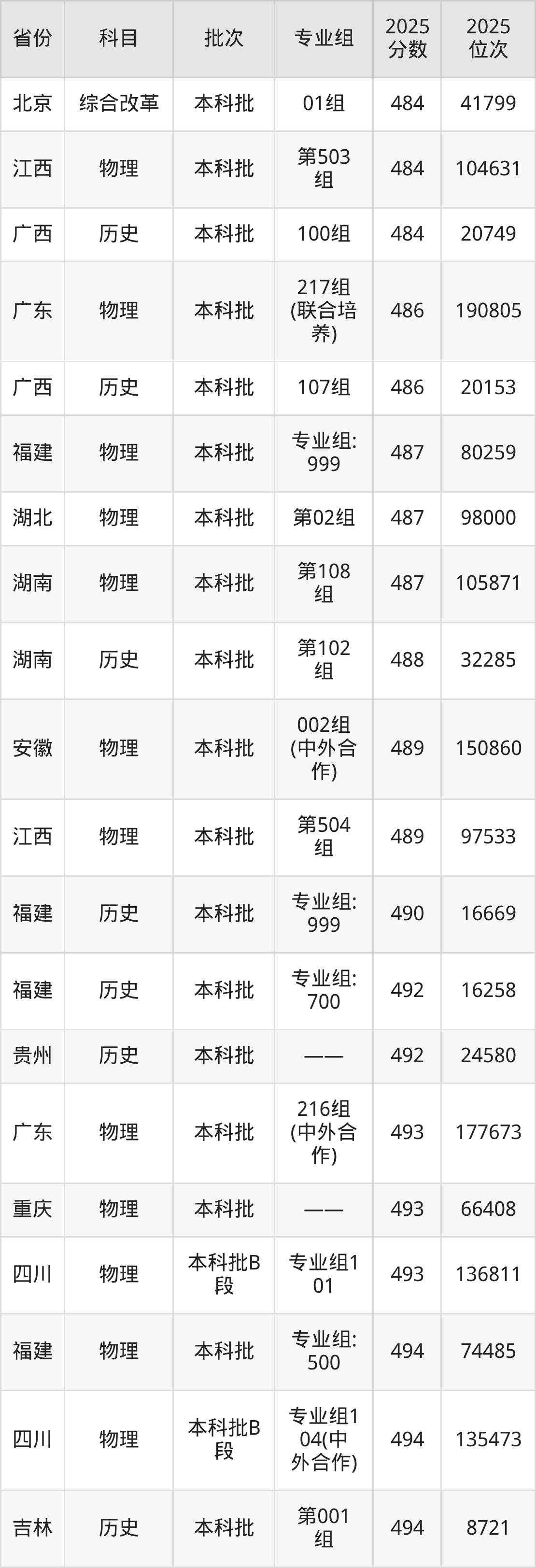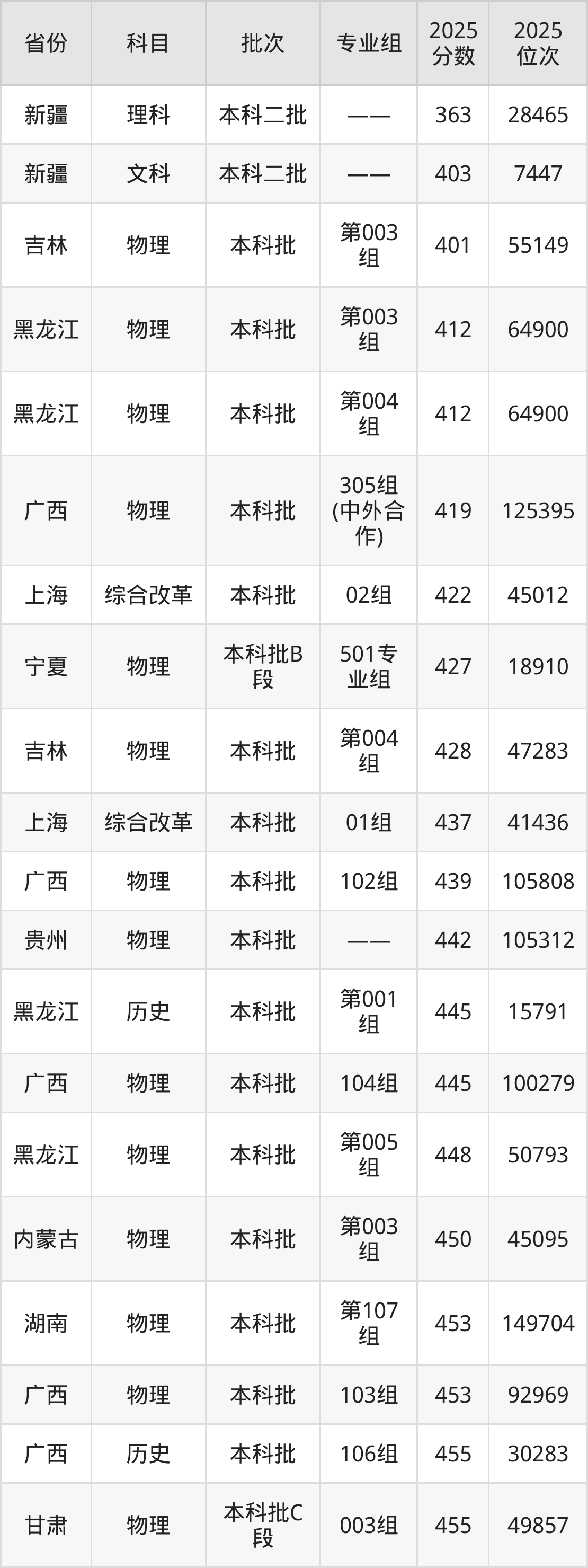 最低录取分数线是403分,对应位次是7447名,招生地区为新疆;