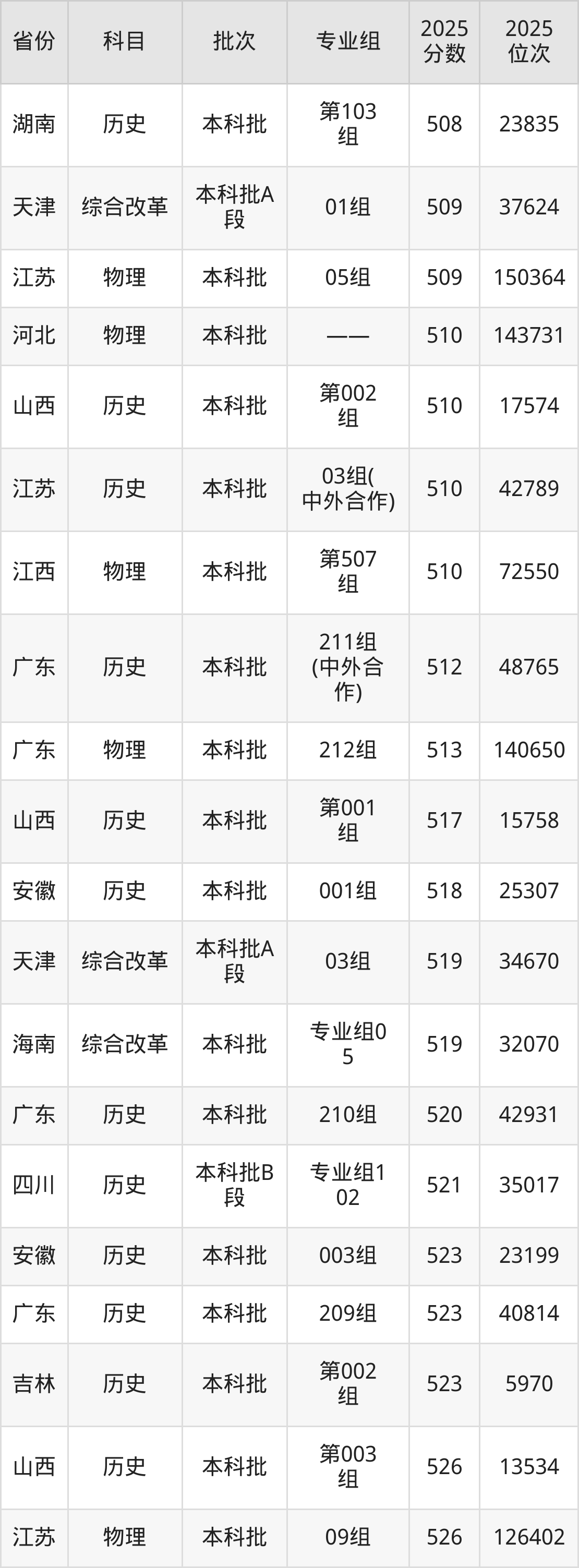 最高录取分数线是526分,对应位次是126402名,招生地区为江苏。