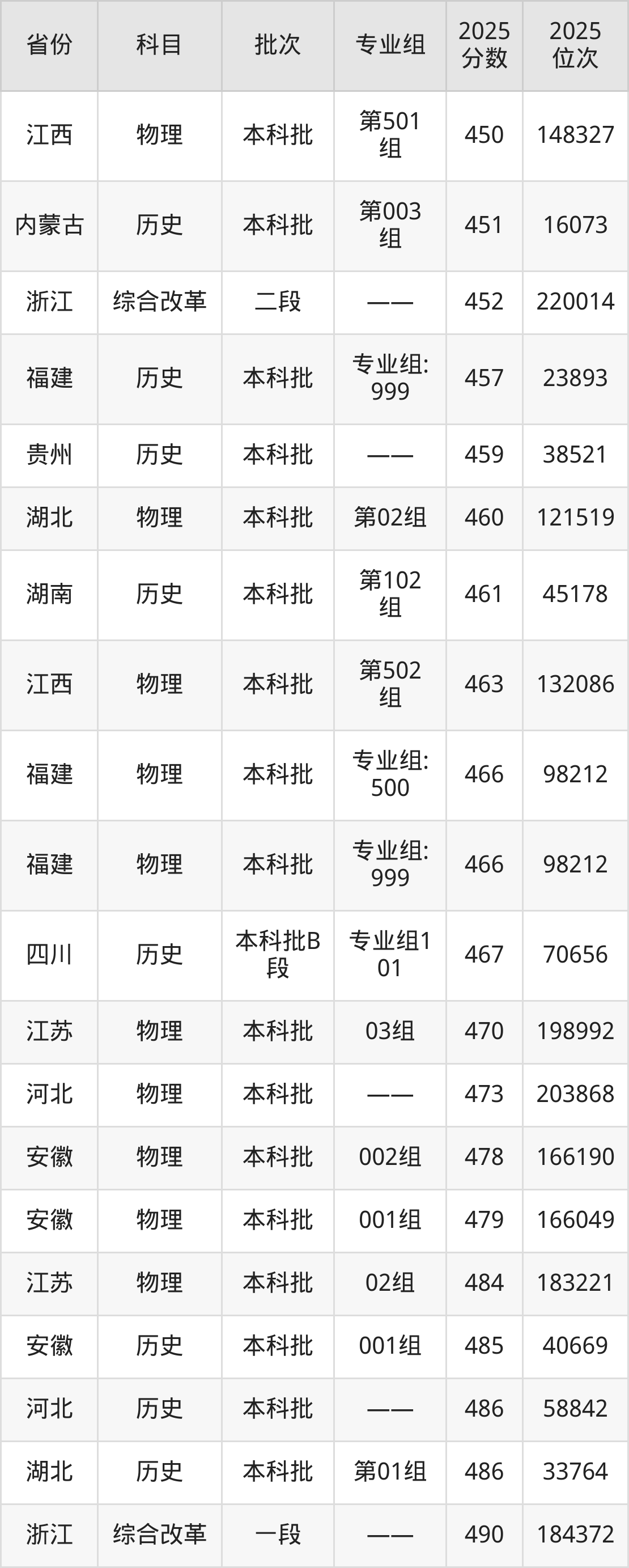 最低录取分数线是452分,对应位次是220014名,招生地区为浙江;