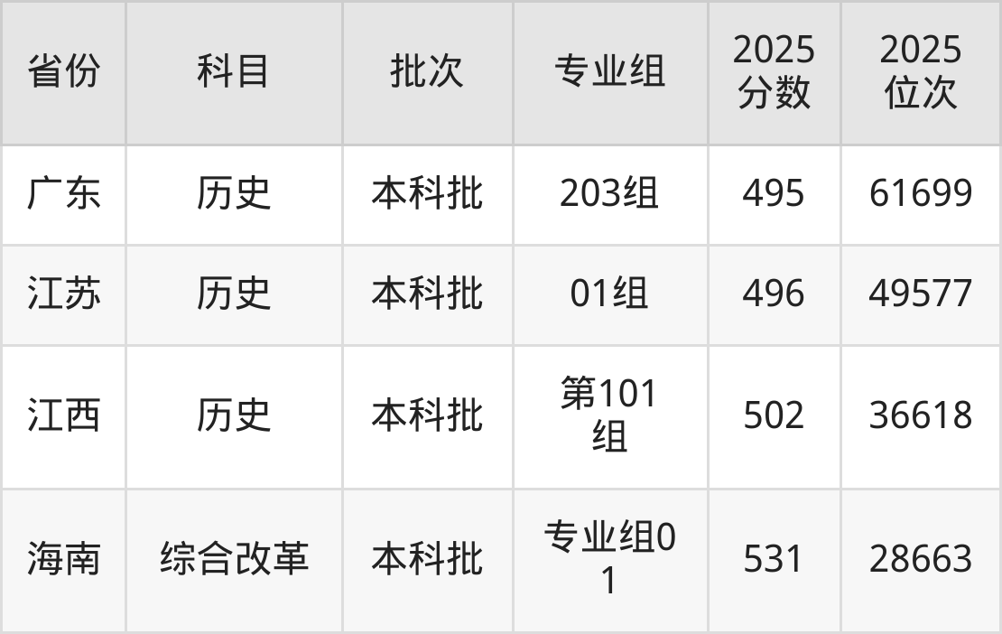 最高录取分数线是502分,对应位次是36618名,招生地区为江西。