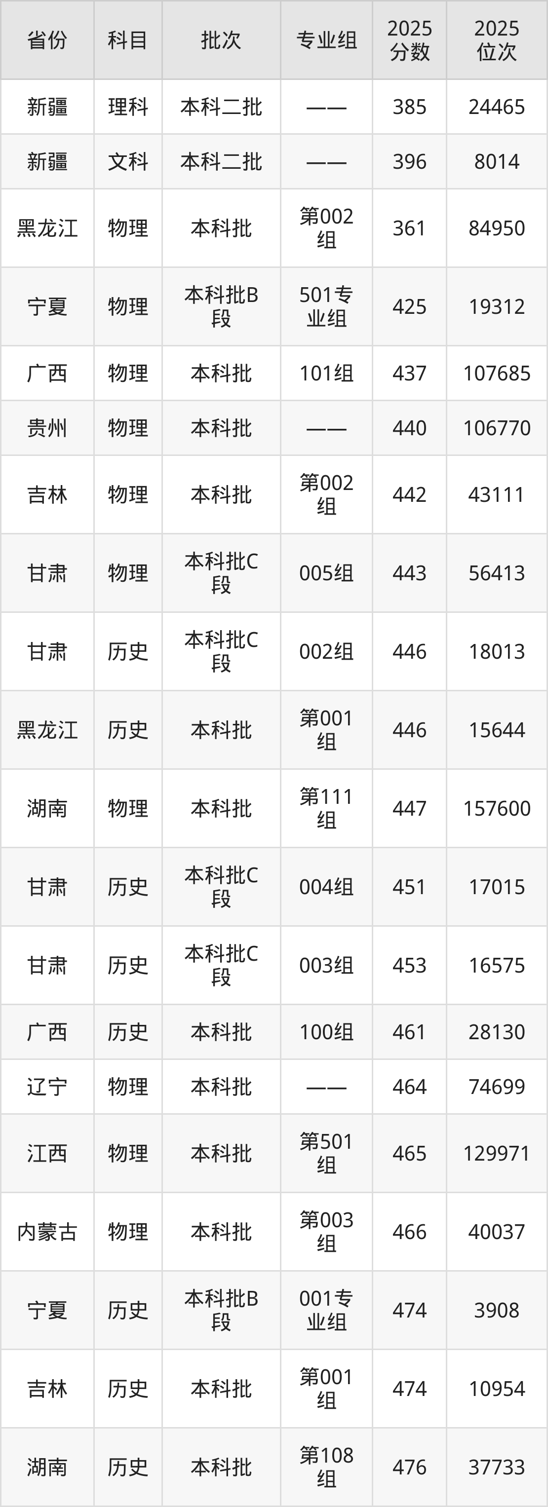 最低录取分数线是396分,对应位次是8014名,招生地区为新疆;