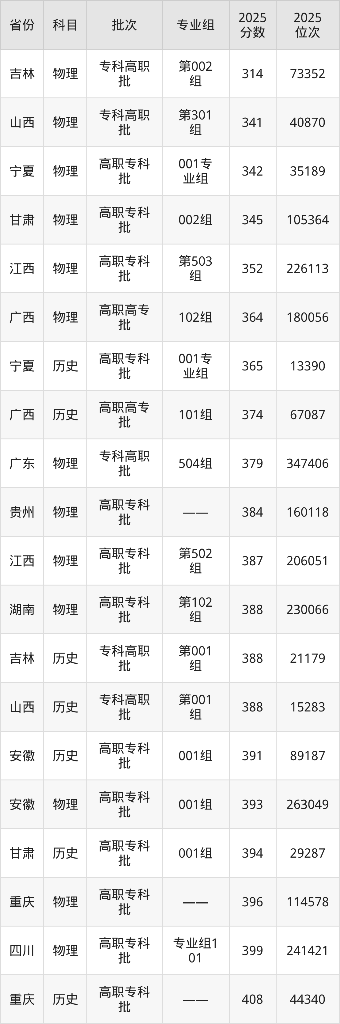 2025年江西司法警官职业学院在各省物理类的录取分数线位于314分-425分之间。