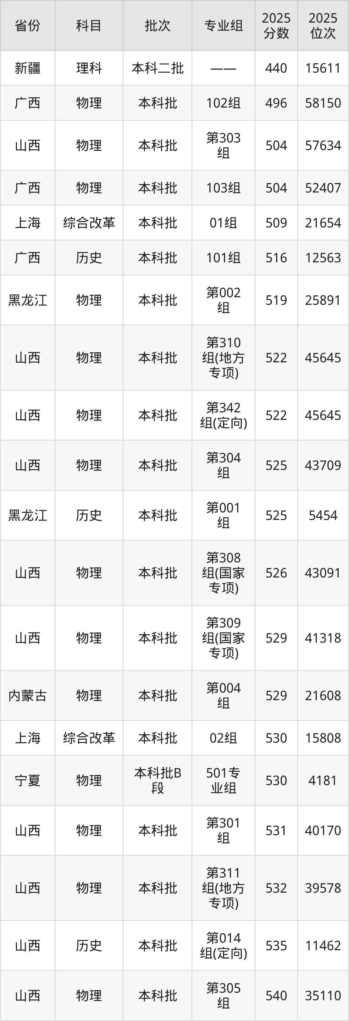 2025年山西大学在各省物理类和理科的录取分数线位于440分-607分之间。