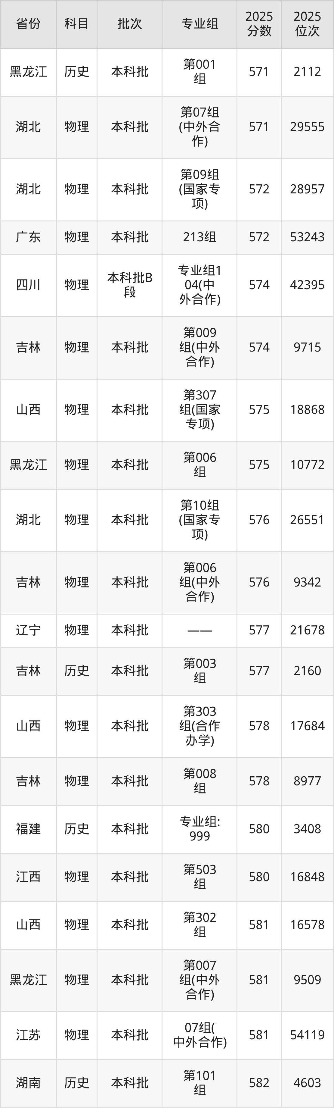 2025年大连海事大学在各省普通批录取分数线一览表: