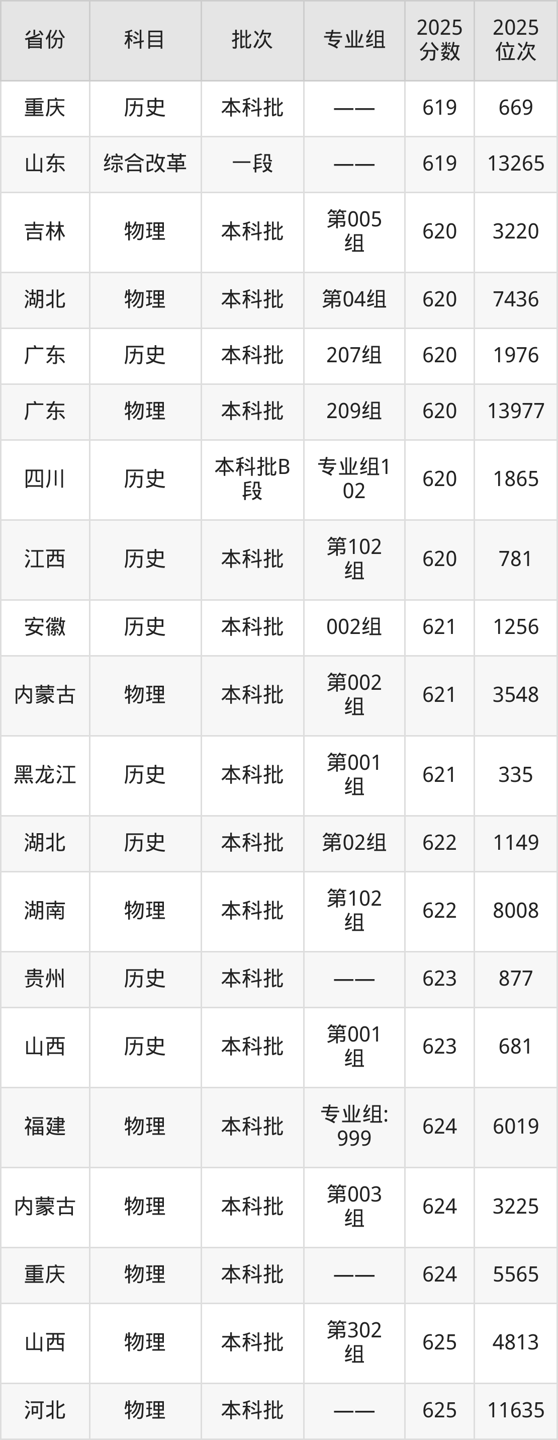 2025年上海财经大学在各省普通批录取分数线一览表: