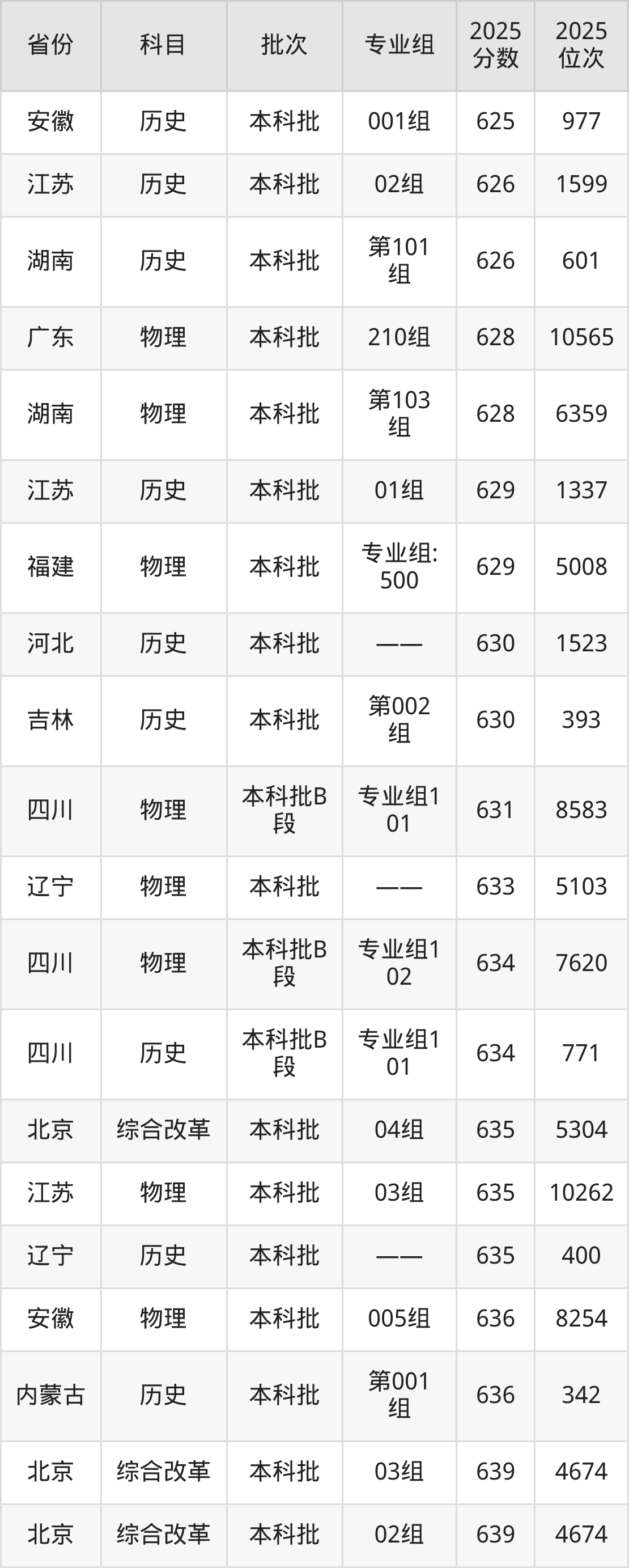 最高录取分数线是636分,对应位次是342名,招生地区为内蒙古。