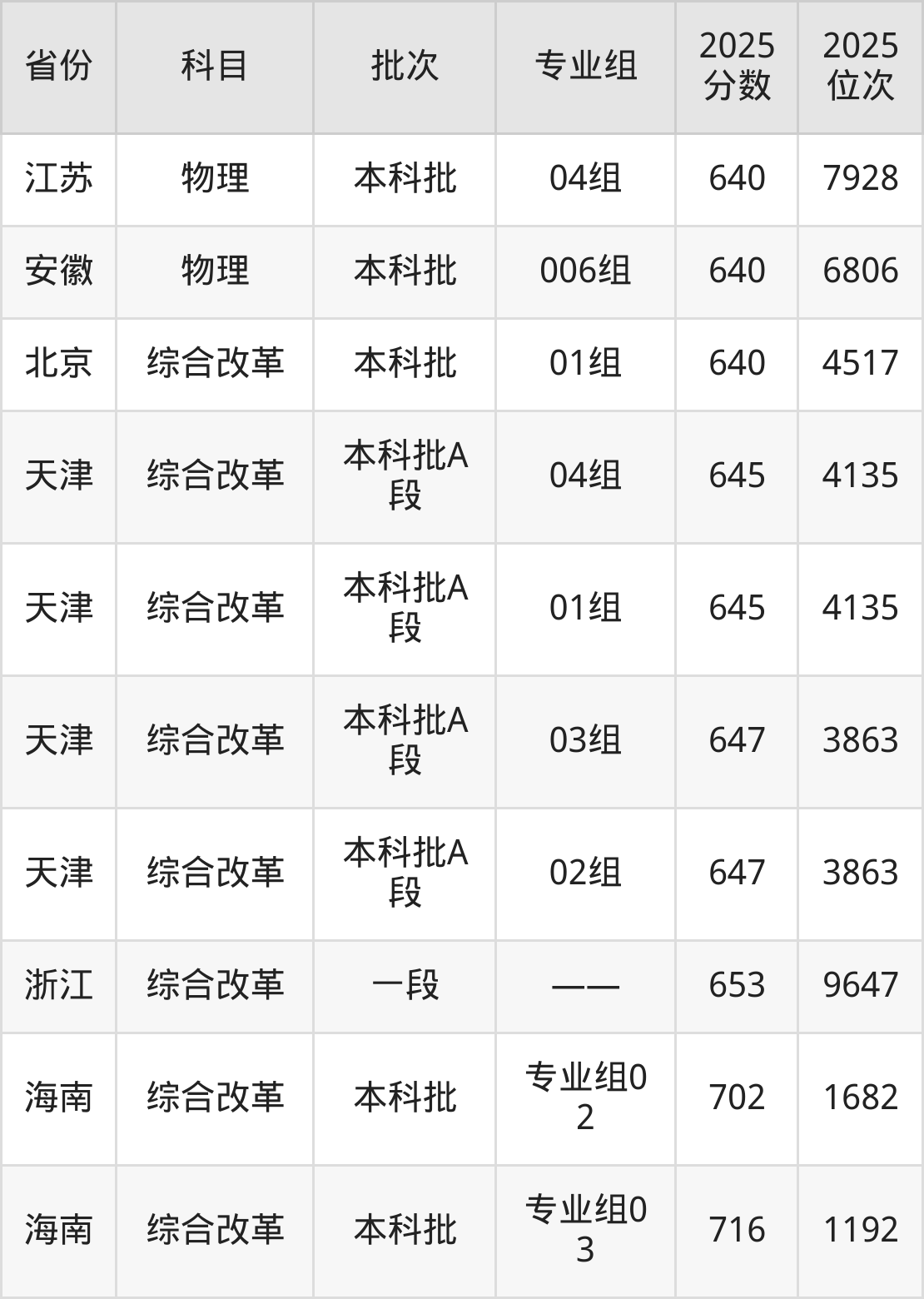 最高录取分数线是640分,对应位次是7928名,招生地区为江苏。