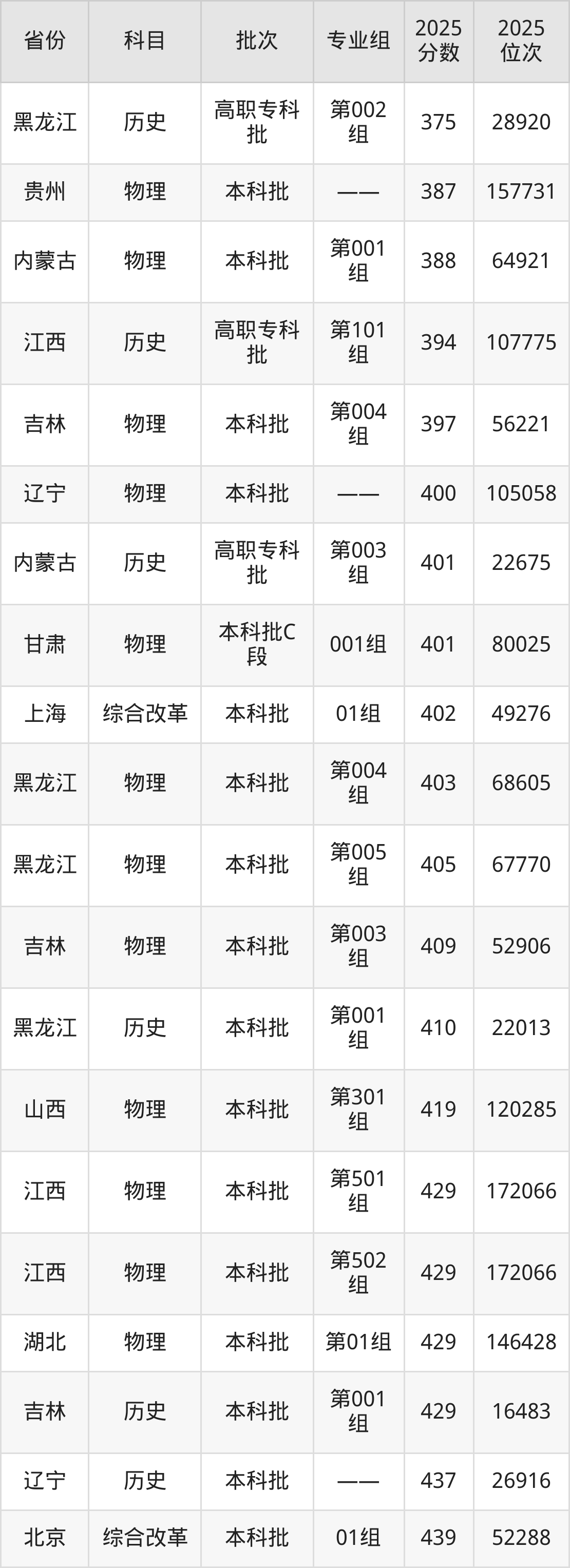最低录取分数线是402分,对应位次是49276名,招生地区为上海;