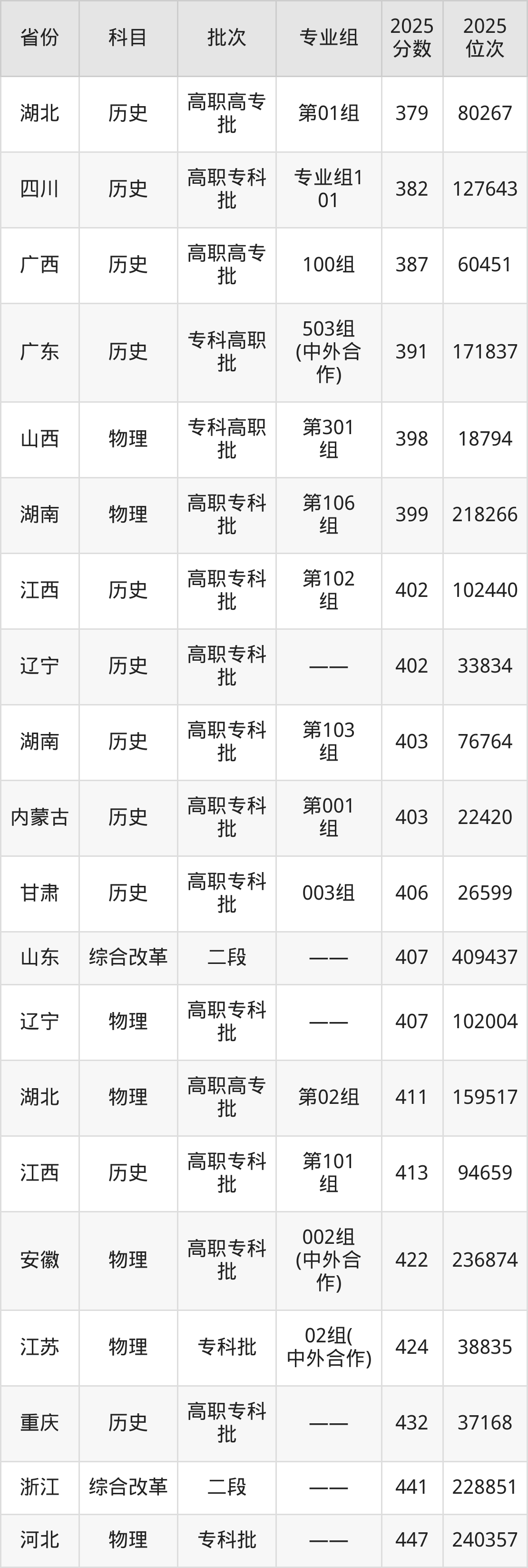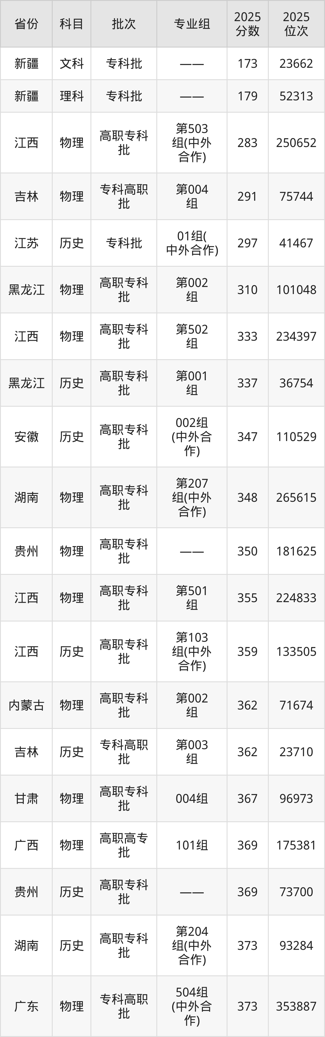 2025年江西信息应用职业技术学院在各省普通批录取分数线一览表: