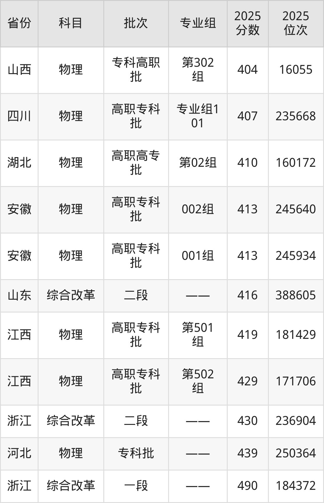 最高录取分数线是490分,对应位次是184372名,招生地区为浙江。