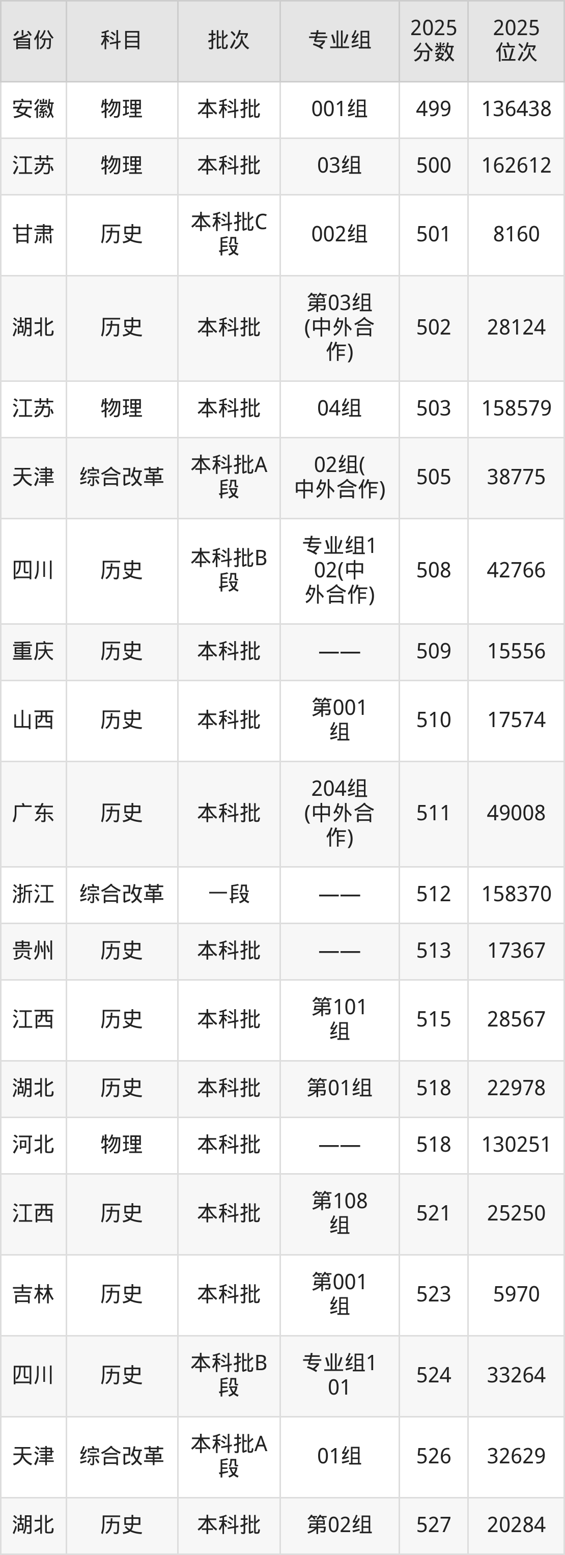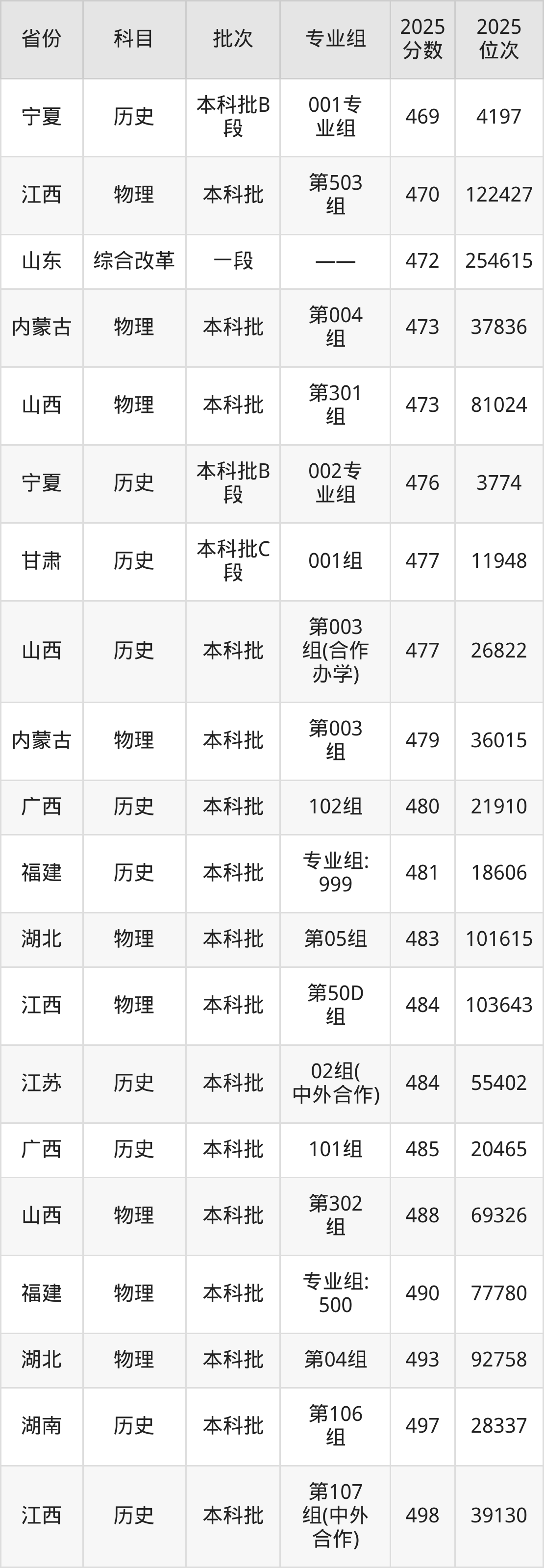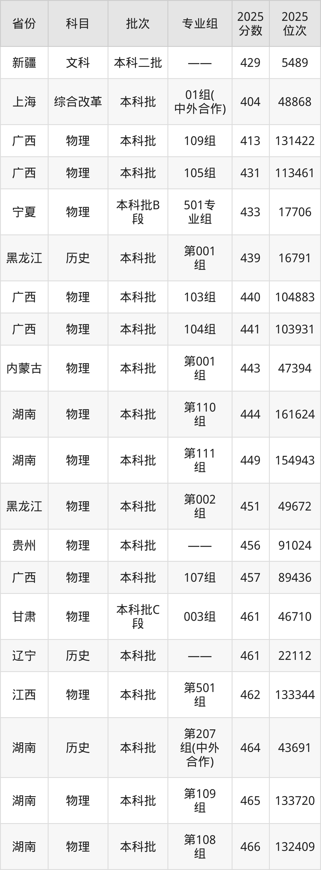 最低录取分数线是429分,对应位次是5489名,招生地区为新疆;