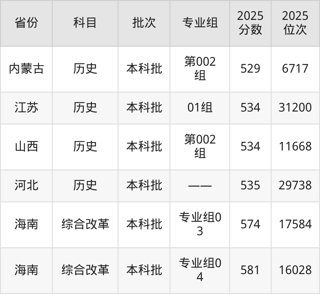 最高录取分数线是581分,对应位次是16028名,招生地区为海南。