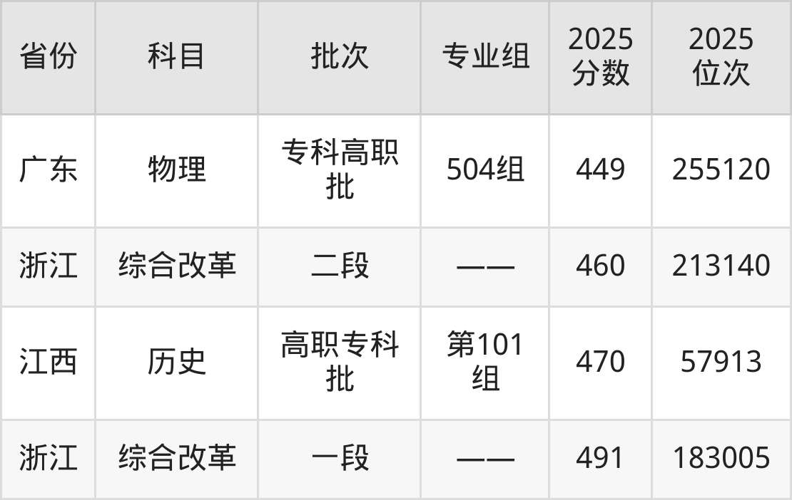 最低录取分数线是460分,对应位次是213140名,招生地区为浙江;