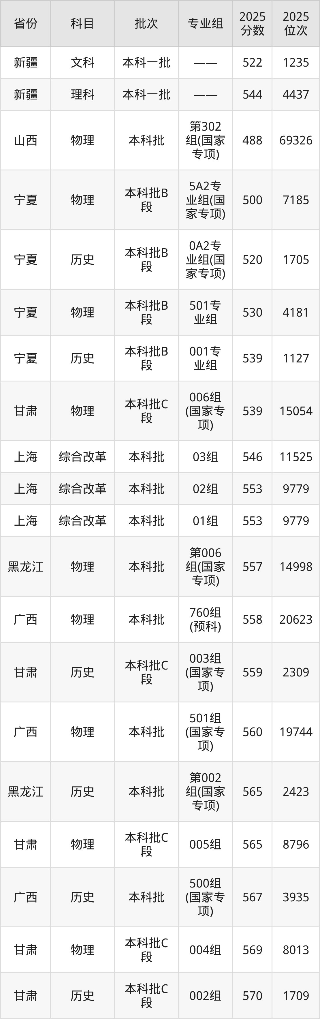 最低录取分数线是520分,对应位次是1705名,招生地区为宁夏;
